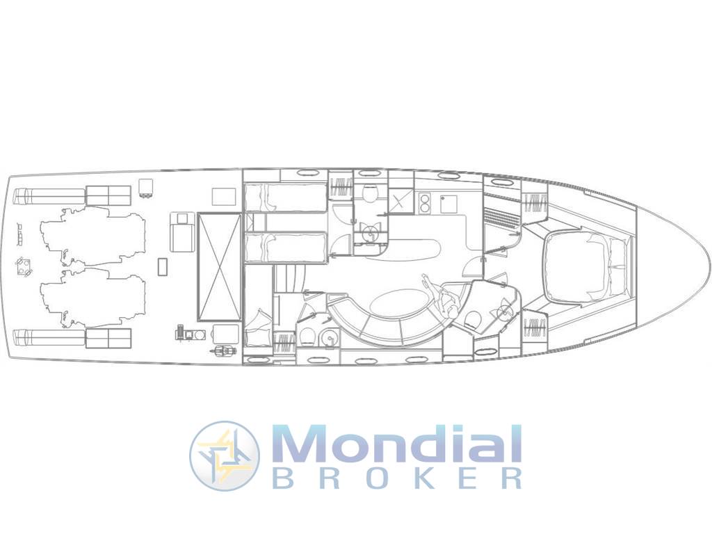 Cantina vini Frigo interno custom in acciaio Divano e borlone letti in pelle n.2 pouf in pelle Soffione doccia con cromoterapia Mobili e cielini interni laccati Tende veneziane zona dinette e cucina rivestite in pelle Vetratura su cielino cabina armatore con sistema oscurante integrato nel vetro con telecomando Paiolo interno custom Set piatti e stoviglie completo per 6 persone Cuscini da esterni rivestiti in spugna |