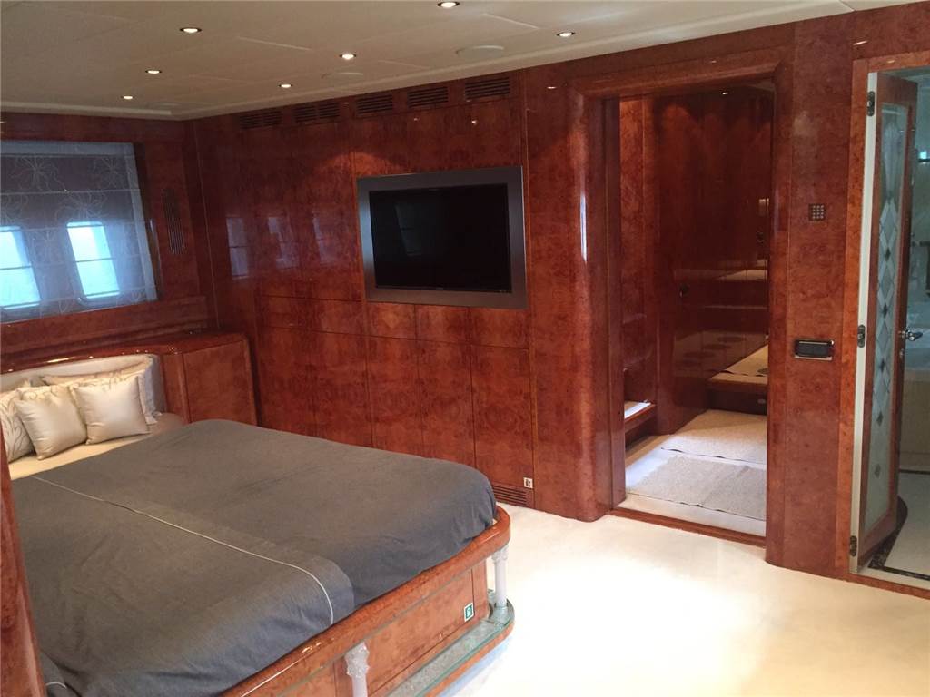 Notas internas4/5 crew in 3 crew cabins The interior layout sleeps up to 9 guests in 4 oms, including a master suite, 2 VIP staterooms, 1 twin cabin and 1 pullman bed. She is also capable of carrying up to 5 crew onboard to ensure a relaxed luxury yacht experience. Timeless styling, beautiful furnishings and sumptuous seating feature throughout hervessel/charter_crew_totalng areas to create an elegant and comfortable atmosphere. Notas de la instrumentaciónEntertainmentMain saloon : Audio system, 50” Plasma TV, DVD, Ipod dock and surround system. Master cabin : 42”Plasma TV, DVD, Ipod dock and surround system. VIP cabins : 30” TV, DVD and iPod dock. Guest cabin : 30”TV, DVD, iPod dock. Sun and main deck : Audio system. Guest Accommodation – Audio Visual Equipment & Deck Facilities Aft Deck : 6 Loudspeakers Linn, Cache etanche Crestron, Remote Control Crestron. Fore deck: Auto radio CD Panasonic, 2 Loudspeakers Polyplanar, Cache etanche auto radio. Deck : TV Plasma Fuji 50”, Hi-Fi Linn, Amplifier Linn, Plug auxiliary sources, Remote Control Crestron, 8 Loudspeakers Linn, 1 Sub Base Loudspeaker Revox, Phone Siemens, Plug. Master Cabin : TV Plasma Fuji 42”, Hi-FI Linn, Plug auxiliary sources, Remote Control Crestron, 6 Loudspeakers Linn, 1 Sub Base Loudspeaker Revox, Phone Siemens, Plug PC. Guest Cabin Portside: TV Plasma Fuji 42”, Hi-FI Linn, Plug auxiliary sources, Remote Control Crestron, 5 Loudspeakers Linn, Sub Base Loudspeaker Revox, Phone Siemens, Plug PC. Guest Cabin Starboard : TV Plasma Fuji 42”, Hi-FI Linn, Plug auxiliary sources, Remote Control Crestron, 5 Loudspeakers Linn, Sub Base Loudspeaker Revox, Phone Siemens, Plug PC. Twin Cabin : TV LCD Sharp 20”, HI-FI Linn, Plug auxiliary sources, Remote Control Crestron, 5 Loudspeakers, Sub Base Loudspeaker, Telephone Siemens, Plug PC. Captain Cabin : TV LCD Sharp 20”, Room Amplifier Linn, Remote Control Crestron, Loudspeakers Linn, Phone Siemens, repetitor Simrad, Plug PC, Camera Monitor, Monitor PC, Fax, Printer. Crew Cabin : TV LCD Sharp 15”, Room Amplifier Linn, Remote Control Crestron, 2 Loudspeakers Linn, Phone Navigation (new 2019) Radar Furuno, Radar Keyboard Furuno, Radar Monitor LCD 17”, Plotter Computer Simrad, Monitor Plotter 15”, Loch Depth Simrad, Wind Simrad, Autopilot Robertson, Navtex Furuno, GPS Furuno, Gyro Robertson, Monitor LCD, Remote Camera Crestron, repetitor Gyro KVH. Communication : VHF Furuno, GSM Tellular, Satcom Fleet 77, PABX (Tel exchange) Siemens, TV Sat Sea Tel, Fax Machine Samsung, 2 Antenna VHF, Antenna FM, Antenna Navtex, Ante Notas de armamentoSecurity Telecamera Engine Room Embex, Telecamera Deck Elbex, telecamera Arch Elbex. Galley & Laundry TV LCD Sharp 20”, DVD Micromega Room Amplifier Linn, Remote Control Crestron Deck equipment Air conditioning Throughout with cabin controls,Deep freezer,Hot water,Washing machine,Manual bilge pump,Refrigerator,Battery charger,Microwave oven,Electric bilge pump,Dishwasher,Oven,Electric head,Fresh water maker,Heating,Bow thruster,Air compressor,Teak cockpit,Hydraulic gangway,Swimming ladder,Cockpit shower,Teak sidedecks,Cockpit cushions,Cockpit table,Liferaft,Electric windlass |