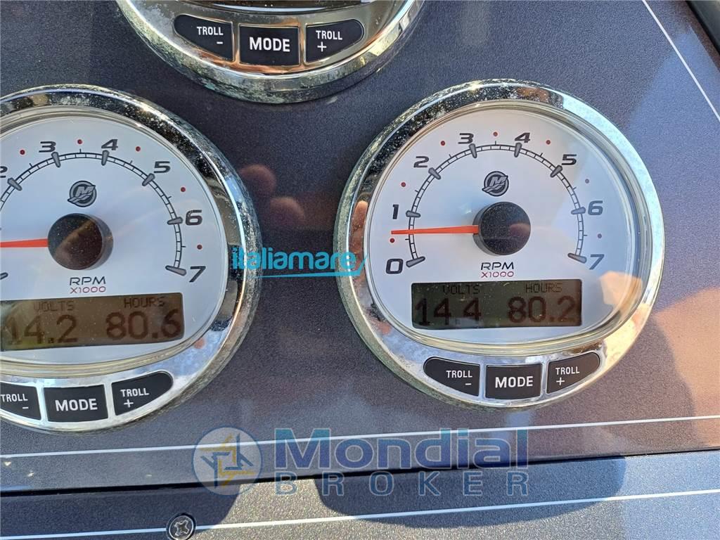 Notas internasNotas de la instrumentaciónStrumentazione elettronica di navigazione: Angolo barra, Bussola, Computer di bordo, Contametri catena, Display, Ecoscandaglio, GPS, Plotter con antenna GPSAllestimento tecnico e di coperta: Allarme motore, Allarme sentina, Ancora, Autoclave, Batterie, Camminamenti laterali in teak, Caricabatterie, Doccia esterna, Elica di prua-bow thruster, Impianto antincendio, Pozzetto teak, Presa 220v banchina, Salpa ancore elettrico, Scaletta da bagno, Dotazioni domestiche di bordo: BBQ/ Grill, Prese interne 12v, Prese interne 220v, WC marino elettrico Intrattenimento: Altoparlanti, Stereo fusion Notas de armamentoCucina ed elettrodomestici: Cucina, Frigorifero esterno,Tappezzerie: Cuscineria completa, Cuscineria di poppa, Cuscineria di prua |