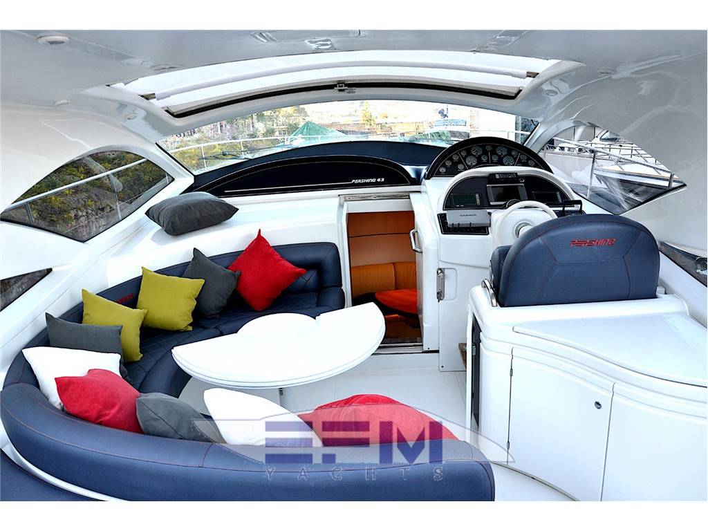 With its svelte and elegant lines, the Pershing 43 presents the latest design trends that make Pershing boats stand out: the aggressive deep-V keel, the double glass panels at the sides, and the spacious cockpit. The interior fittings and furnishings are carefully selected and well defined, modern and functional, ensuring a comfortable stay on board. |