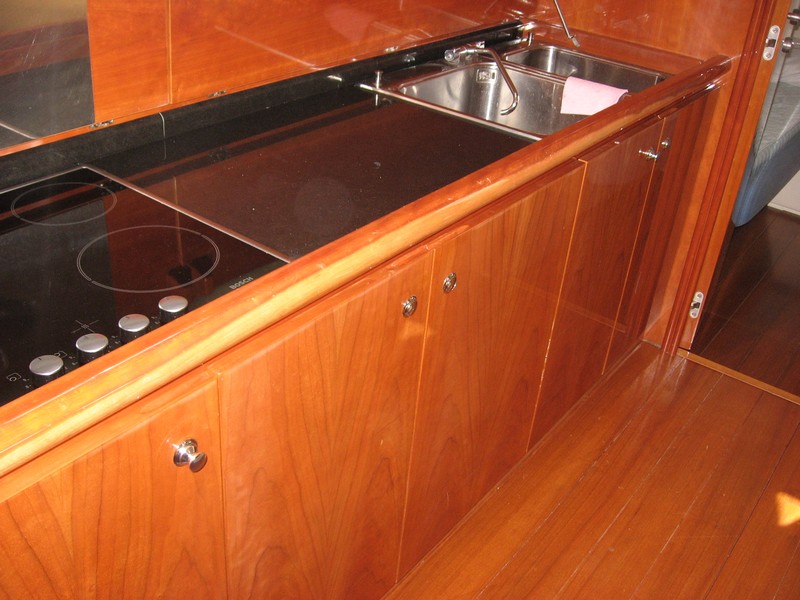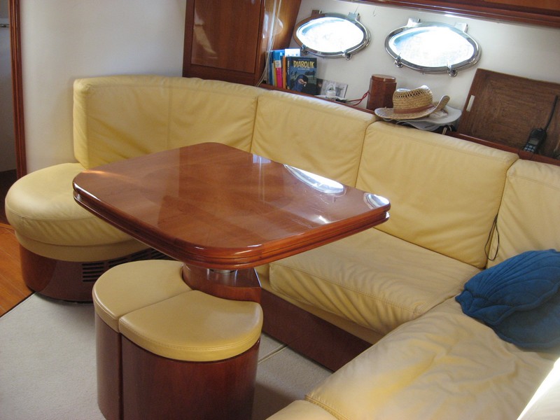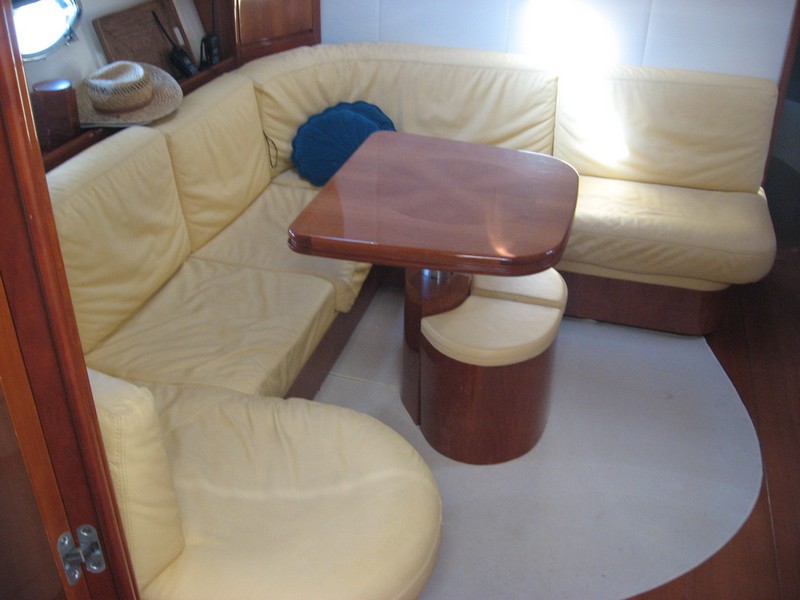 Notas internasGuest cabina 1 doble doble independiente de VIP en la entrada de la cabina con baño con WC, lavabo, ducha, 1 camarote doble estéreo en una superficie plana con cuarto de baño con WC, lavabo, ducha, todas las cabañas con aire acondicionado frÃo living comedor sala de estar con sofá y mesa de centro, gran amarillo TV Samsung 26 "LCD, reproductor de DVD, decodificador de Sky, Hi-Fi Sony Radio CD equipada cocina con vitrocerámica con 4 quemadoresHorno Bosch, convección y microondas, nevera, congelador, doble lavamanos, lavaplatos de acero inoxidable.  Notas de la instrumentaciónRaitheon ST 7000 piloto automático-GPS chartplotters Geonav 10 c-Raytheon ST60 Tridata (temp.vel de profundidad).Rápida cadena de plata metro contra-compass-EPIRB satélite-VHF Shipmate TV inversor Navisystem-antena analógico y digital terrestre Tv-hidráulico pasarela acero inoxidable y deformación de teca Besenzoni 1 cabrestante en el ancla de popa con 100 m arco de acero inoxidable mm cadena 12 propulsores y propulsores de popa Notas de armamentoMesa de teca cabina y sofá en cabina, cabina fregadero con gabinete, cristal encimera de cerámica 3 quemadores y refrigerador de cabina, cuscineria sunsuit, tapas del disco duro completo (tapa suave) se pueden abrir ventanas laterales de accionamiento eléctrico |