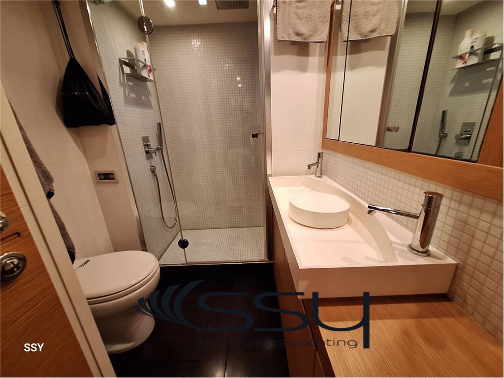 Notas internas- Galley: Separate and lower-level kitchen equipped with a Bosch glass-ceramic cooktop, Panasonic combi oven, Bosch column refrigerator and freezer, Bosch dishwasher, and a De Longhi coffee machine. - Master Cabin: Full beam master cabin with double bed and ensuite bathroom (sink, shower, electrical toilet). Safe, sofa and fridge + electric curtains, Samsung TV32’’ + Bose + IPod docking station. - Guests’ cabin: One twin cabin with one ensuite bathroom (sink, shower, electrical toilet), electric curtains, Panasonic TV21’’ + Sony cd/mp3 player. - VIP Cabin: At the bow with double bed and ensuite bathroom (sink, shower, electrical toilet), electric curtains, Panasonic TV24’’ + Sony cd/mp3 player. - Crew cabin: Cockpit access with single bed and one bathroom (sink, shower, electrical toilet). - Salone: Divano ad L in pelle Poltrona Frau con tavolo ampliabile, contrapposto a un mobile bar/TV con TV retrattile da 32’’, sistema audio Bose, ricevitore satellitare HD Strong SRT7300 e minibar Vitrifrigo. Plancia comandi con due sedili in pelle Besenzoni, regolabili elettricamente. - Cucina: Cucina separata e posta al livello inferiore, completa di piano cottura in vetroceramica Bosch, forno combinato Panasonic, frigorifero e freezer a colonna Bosch, lavastoviglie Bosch e macchina del caffè De Longhi. - Cabina armatoriale: Cabina armatoriale a tutto baglio con letto matrimoniale e bagno privato (lavabo, doccia, WC elettrico). Cassaforte, divano e frigorifero + tende elettriche, TV Samsung da 32’’ + Bose + docking station per iPod. - Cabina ospiti: Una cabina doppia con bagno privato (lavabo, doccia, WC elettrico), tende elettriche, TV Panasonic da 21’’ + lettore CD/mp3 Sony. - Cabina VIP: Situata a prua con letto matrimoniale e bagno privato (lavabo, doccia, WC elettrico), tende elettriche, TV Panasonic da 24’’ + lettore CD/mp3 Sony. - Cabina equipaggio: Accesso dal pozzetto con letto singolo e bagno (lavabo, doccia, WC elettrico). Notas de la instrumentaciónVHF Icom IC-M330GE;Tridata Autohelm ST60; 12'' Raymarine multifunction radar/plotter touchscreen; autopilot Autohelm ST6002 smart; rudder ind. level Autohelm ST60; Trim Tab joystick control; 2xMMDS CLC 6.3 engine displays; MZ Electronic chain counter; TVCC cam at cockpit. Notas de armamento- Seakeeper 9 gyroscopic stabilizer (2024);- Bow & stern thruster (10hp/7.5kw); - 21.5Kw Onan generator MDKDV-811ZA; - battery charger Victron Energy Skylla 24V/80A; - battery charger Mastervolt 12V/15A; - inverter Mastervolt SineWave 24V/1500”; - A/C sysetm Condaria PCWM/FCL 4501; - Satellite antenna Navisystem NT65; - sat HD decoder Strong SRT7300; - saloon & master cabin Bose Sound System; - 4xlcd TV (2x32’’ + 2x24’’); - Dimmer light in cockpit and saloon; - Camera in cockpit; - Electric curtains in salon and cabins; - Besenzoni electric pilot seat; - OpacMare Hydraulic gangway; - Hydraulic opening garage for tender; - Hydraulic bathing ladder; - Electrical opening sun roof in the salon; - Electrical opening Bimini in cockpit; - Electrical splitting door in cockpit; - Retractable mooring cleats on bathing platform; - Furniture with frigobar and sink in cockpit; - Full teak deck (bathing platform, cockpit and catwalk); - Sun pads at the front and at the stern; - 2 X 1200W Lofrans’ Windlass at the stern; - anchor windlass Lofrans’ Project X4 2000W/24V; - Chain airbag + stainless steel chain & anchor; - Covers for: windscreen, side windows and cockpit table; - Williams 325 water jet tender; - backlit name; - full emergency equipment. - Stabilizzatore giroscopico Seakeeper 9 (2024); - Eliche di prua e di poppa (10hp/7.5kw); - Generatore Onan 21,5Kw MDKDV-811ZA; - Caricabatterie Victron Energy Skylla 24V/80A; - Caricabatterie Mastervolt 12V/15A; - Inverter Mastervolt SineWave 24V/1500; - Impianto A/C Condaria PCWM/FCL 4501; - Antenna satellitare Navisystem NT65; - Decoder satellitare HD Strong SRT7300; - Sistema audio Bose nel salone e nella cabina armatoriale; - 4 TV LCD (2x32’’ + 2x24’’); - Luci dimmerabili nel pozzetto e nel salone; - Telecamera nel pozzetto; - Tende elettriche nel salone e nelle cabine; - Sedile pilota elettrico Besenzoni; - Passerella idraulica OpacMare; - Garage idraulico per tender; - Scaletta bagno idraulica; - Tettuccio apribile elettricamente nel salone; - Bimini elettrico apribile nel pozzetto; - Porta divisoria elettrica nel pozzetto; - bitte retrattili sulla plancetta bagno; - Mobile con frigobar e lavandino nel pozzetto; - Ponte in teak completo (plancetta bagno, pozzetto e passavanti); - Cuscini prendisole a prua e a poppa; - 2 verricelli Lofrans’ da 1200W a poppa; - Salpa ancora Lofrans’ Project X4 2000W/24V; - Airbag per catena + catena e ancora in acciaio inox; - Coperture per parabrezza, finestrature laterali e tavolo pozzetto; - Tender Williams 325 water jet; - Nome retroilluminato; |