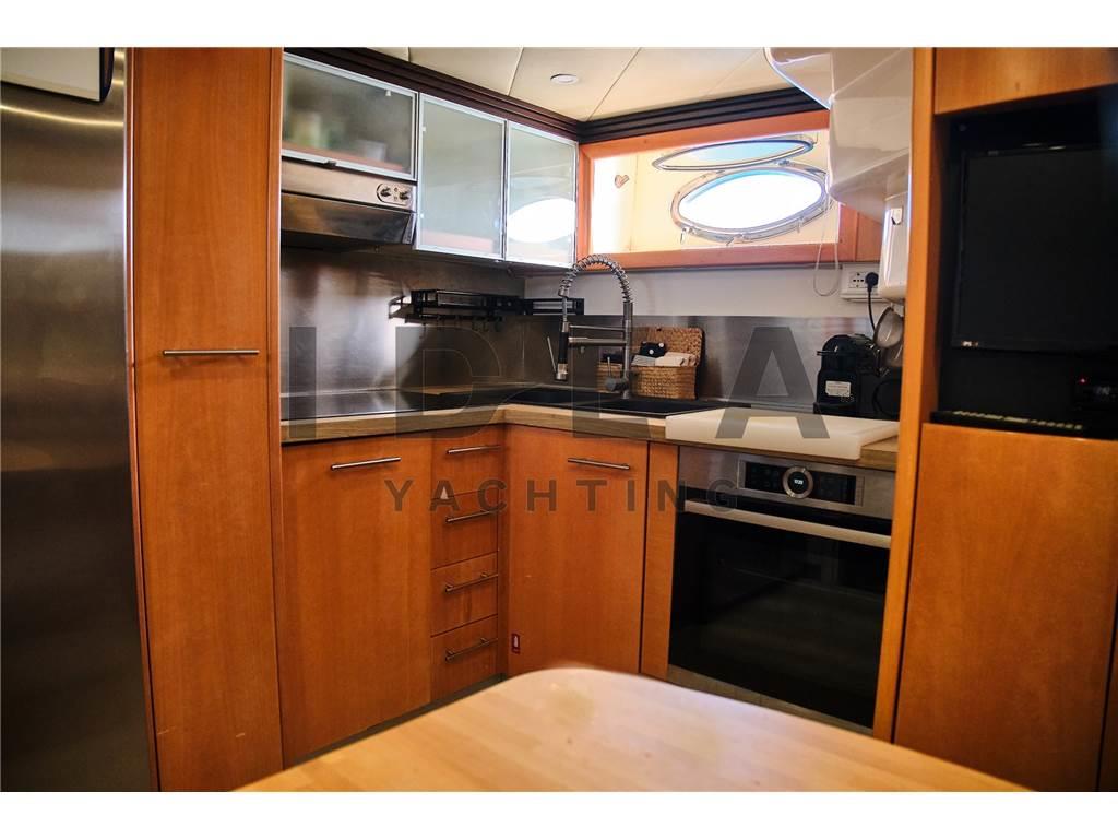 Notas internasNotas de la instrumentaciónNotas de armamentoAllestimento tecnico e di coperta:Garage per tender, Luci di cortesia, Luci subacquee, Piattaforma, Porta ingresso, Tavolo pozzetto. Dotazioni domestiche di bordo: Aria condizionata, BBQ/ Grill, Clima reversibile, Prese interne 220v, WC marino elettrico. Intrattenimento: Altoparlanti, Antenna Satellitare TV, Decoder satellite, Digitale Terrestre, DVD, Impianto TV, Radio AM/FM, Stereo, TV. Cucina ed elettrodomestici: Congelatore, Cucina, Forno, Frigorifero interno, ICE Maker, Lavastoviglie, Piastra in vetroceramica, Winecooler. Tappezzerie: Cuscineria completa, Cuscineria di poppa, Cuscineria di prua, Cuscineria Pozzetto, Oscuranti, Tenda Elettrica. |