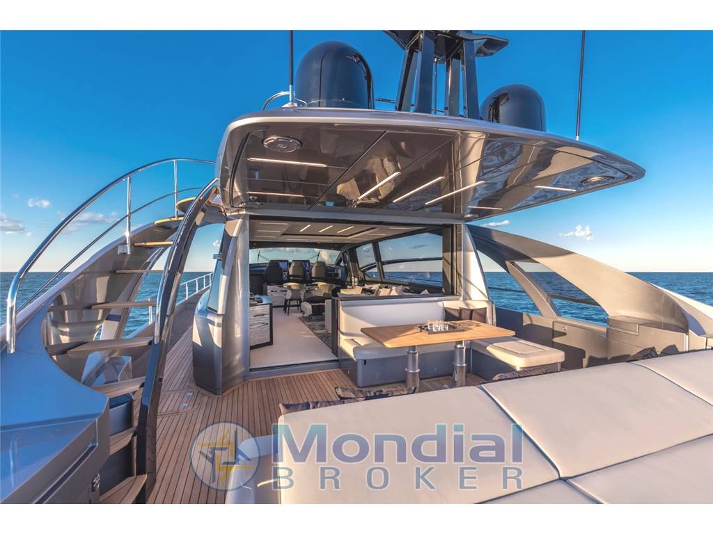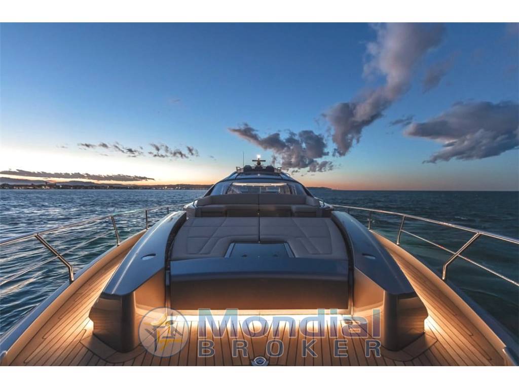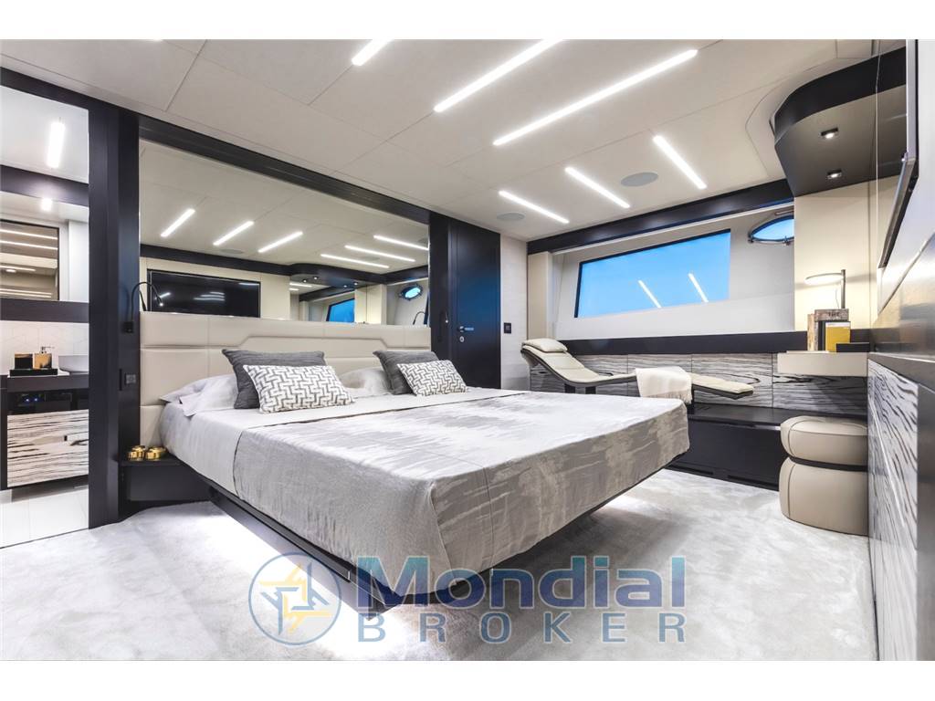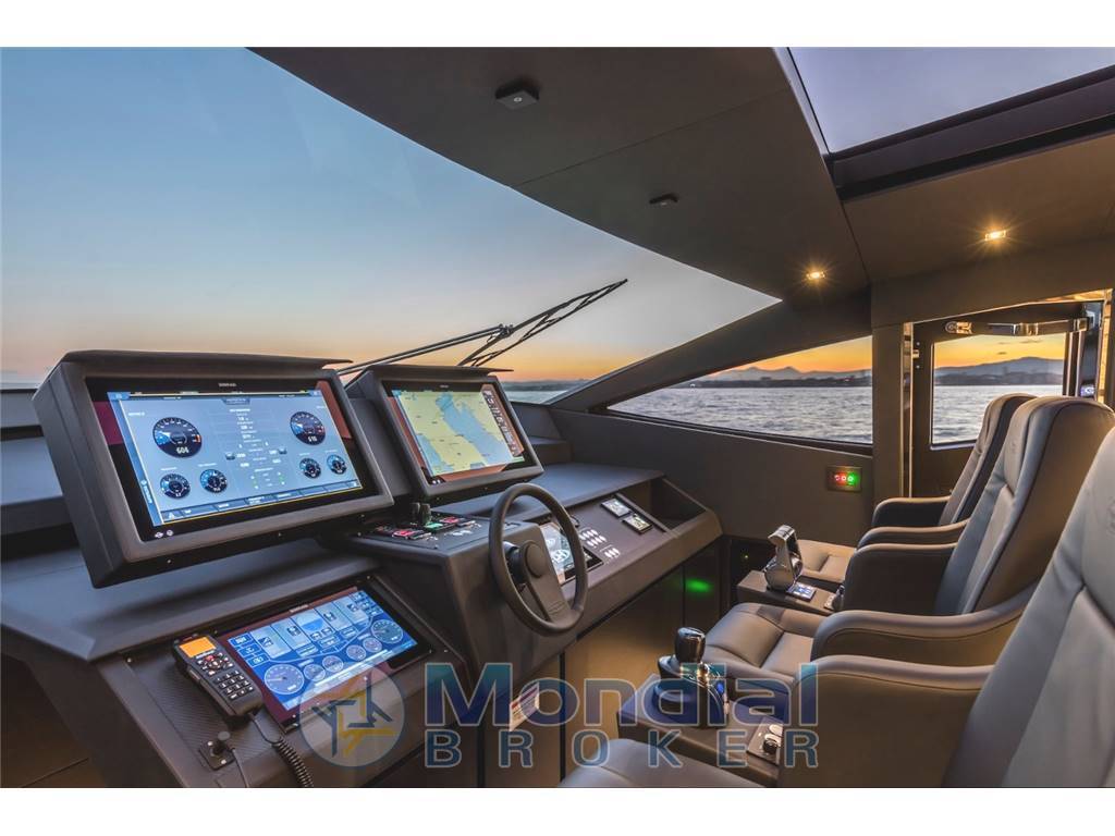 Notas internasNotas de la instrumentaciónFull Simrad navigation system monitor 24" (diff from std)Naviop - Double check Package Naviop - Ambience Package Naviop - Mobile Package Naviop - Power efficiency Package Premium sound in master cabin Premium sound JL in external areas Stabilizers Seakeeper, at anchor and underway Underwater lights Premium sound in external areas and master cabin TV 49' in-salon and Master cabin Smaller TVs in the rest of cabins Notas de armamentoOptional ExtrasSeakeeper 2XNG9 AIR/CO Supertropic 144.000 BTU (diff from std) Bimini with poles on sundeck Cockpit table with electrical movement Decorative cushions Driving station on sundeck Electric blinders in VIP cabin and guest cabins Electric curtains in VIP cabin and guest cabins Pullman bed in guest cabin Stern thruster hydraulic 31HP Underwaters lights installed lenghtwise on the two sides of the hull Underwaters lights under the bathing platform Upgrade to 2x24 kw Mase generators (Diff. da std 2 x 19 kw Onan) Watermaker Idromar 180 Lt/H (diff from std) Waterproof cover for outside Bedspreads (diff from std) Dynamic positioning system Easy dock for surface drives Electric curtains fabric (diff from std) External upholstery (diff from std) Full Simrad navigation system monitor 24" (diff from std) Galley floor (diff from std) Mosaic in guest bathrooms (diff from std) Mosaic in master bathroom (diff from std) Mosaico in VIP bathroom (diff from std) Music hull Naviop - Double check Package Music hull Naviop - Double check Package Naviop - Ambience Package Naviop - Mobile Package Naviop - Power efficiency Package Premium sound in master cabin Premium sound JL in external areas Salon chairs (diff from std) Salon rug (diff from std) Salon sofa (diff from std) Salon table (diff from std) Seadoo Spark Jet-ski Jetbike3 Tender Williams 345 Sportjet (diff. from std 3,25 mt) TV 49' in master cabin (diff from std) TV 49' in salon (diff from std) Safety Equipment for 16 Naxtex |