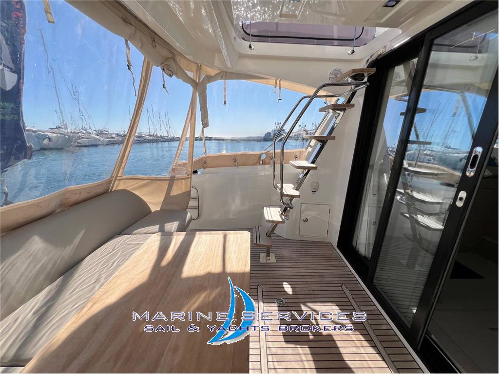 Notas internasINTERNI IN LEGNO CHIARO , PAVIMENTO INGRESSO E ZONA CUCINA IN LEGNO CHIARO , MOQUETTE NELLE CABINE. TAVOLO SALONE REGOLABILE ELETTRICAMENTE Cucina Lavello inox con Miscelatore, piano cottura vetroceramica , forno combinato , Frigorifero doppia tensione (113L)Congelatore doppia tensione (17L)Bidone dei rifiuti, Scomparti e armadietti Cabina armatoriale a centro barca Letto matrimoniale (200 cm x 165 cm) 2 Lampade da lettura,Comodini con scomparti, Ampio guardaroba con ripiani ,Armadio ripostiglio, Toeletta con specchio ,Finestre panoramiche con oscuranti, veneziane Cabina VIP Letto matrimoniale (200 cm x 165 cm),2 Lampade da lettura,Ampio guardaroba con ripiani,Finestre panoramiche con oscuranti, Portello di coperta con oscurante e zanzariera ,Set moquette amovibili ,Spine CA ed entrate USB Notas de la instrumentaciónInterno timoneria:Plancia di guida con comandi motore, strumenti motore, bussola e porta bicchiere , Sedile di pilotaggio con schienale girevole Tergicristalli a intermittenza con lavavetri Sistema di disappannamento del parabrezza Entrate USB Tromba Radar GPS Tridata e Autopilota Trasmettitore/ricevitore AIS Routing automatico GPS che evita secche e instabili Scheda Raymarine visionix 3D 3 TV + Netgear box App per controllo motori da Smartphone Notas de armamentoCoperture complete estate/inverno/posti a sedereAllarme intrusione Generatore Passerella idraulica Collegamento al ponte di prua e al pozzetto di poppa con acqua dolce e salata Proiettore fari con telecomando Luce automatica della sala macchine Cucina su flybridge |