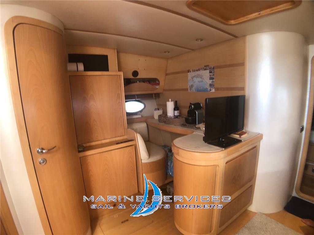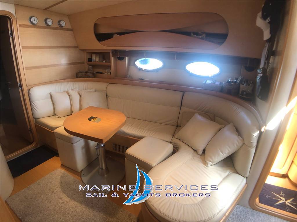 Notas internasAria condizionata Teak ponte principale + parquet nelle cabine Cucina attrezzata con piastre cottura vetroceramica , frigo- freezer, lavello Divani in pelle Canina matrimoniale a prua con bagno en suite Cabina ospiti doppia con letti in piano Cabina Vip con letto matrimoniale alla francese Notas de la instrumentaciónGPSAutopilota Vhf Salpancora elettrico Contametri catena strumentazione motori volvo Regolazione Flaps Notas de armamentoElica di Pruapredisposizione Elica di Poppa Passerella idraulica Generatore Aria condizionata Garage di poppa ( no tender) Hard Top Dotazioni di sicurezza - zattera da revisionare Cuscinerie esterne complete e in buone condizioni Tendalino ombreggiante per pozzetto poppa 2017 rifacimento Teak esterno + prese a mare + Vetri 2022 Carena a zero e trattamento preventivo antiosmosi |