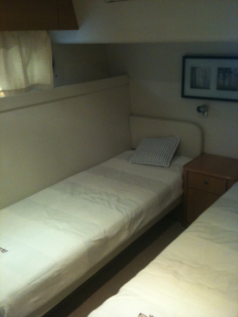 Notas internasCamarote con baño privado con ducha. Cabina VIP con camas separadas. Cabaña de huéspedes con camas planas. Segundo baño con ducha. Cabina de marinero no equipado. Cocina completa con frigorÃfico, placa de cerámica, horno y lavadora Teka piso. Living comedor con gran salón después del puerto de entrada y sentado segunda caseta opuesto. Nevera en salón. TV estéreo con cd. Flybridge con top de bimini, gran solarium, tabla, completa con wet bar fregadero y nevera, parrilla. Generador, inversor de aire acondicionado, satélite, en cabañas, pasillo eléctrico. Notas de la instrumentaciónCOMPLETA instrumentación electrónica: Aparato de VHF antena de VHF con antena de doble estación GPS PLOTTER-CARD READER-piloto automático-RADAR-eco SOUNDER-registro-BRÚJULA-ángulo-satéliteNotas de armamento– Arco PROPULSOR eléctrico WINCH-BOW solarium ALMOHADONES-cojines-POZZETTO sol en FLYBRIDGE recubiertos teca-FLAPS, caliente de ducha eléctrica exterior y bombas de SENTINA de agua frÃa hidráulico pasillo escalera ascensores baño-guardabarros-220V SOCKET-cargador-eléctricos y manuales-AUTOCLAVE-caliente agua caldera-generador DIESEL-HELADERA-cocina cerámica HOB interior madera suelo, alfombra-aire acondicionado-TV-STEREO CD-TVC LCD-horno-agua tanque escape-INMERSO |