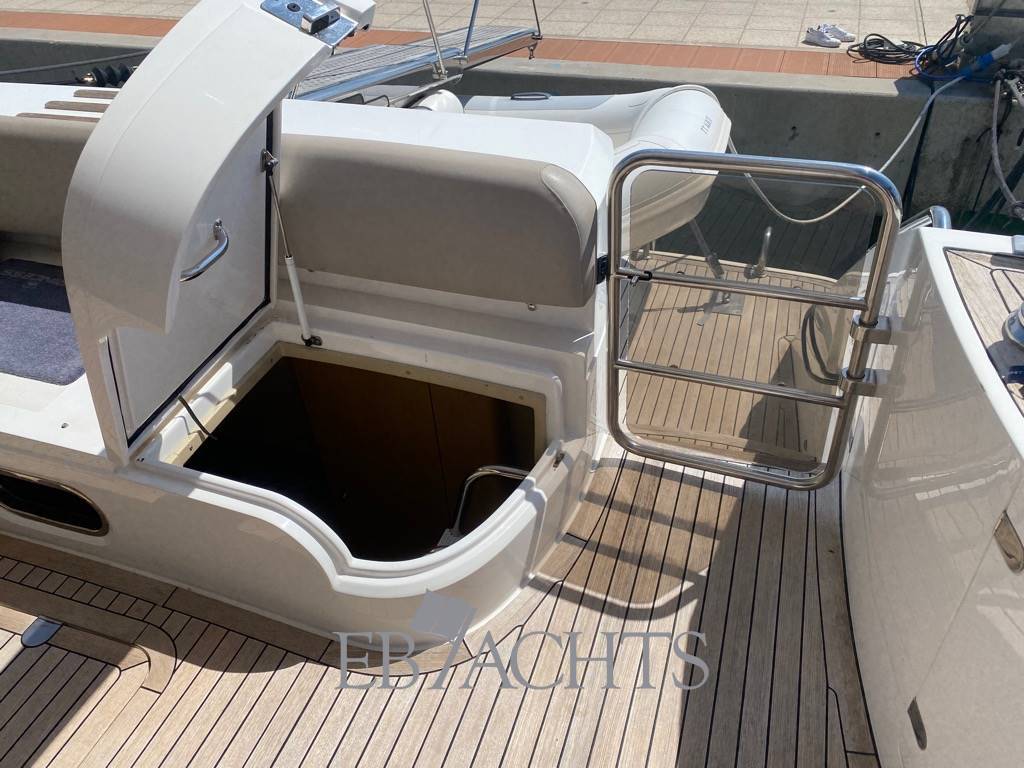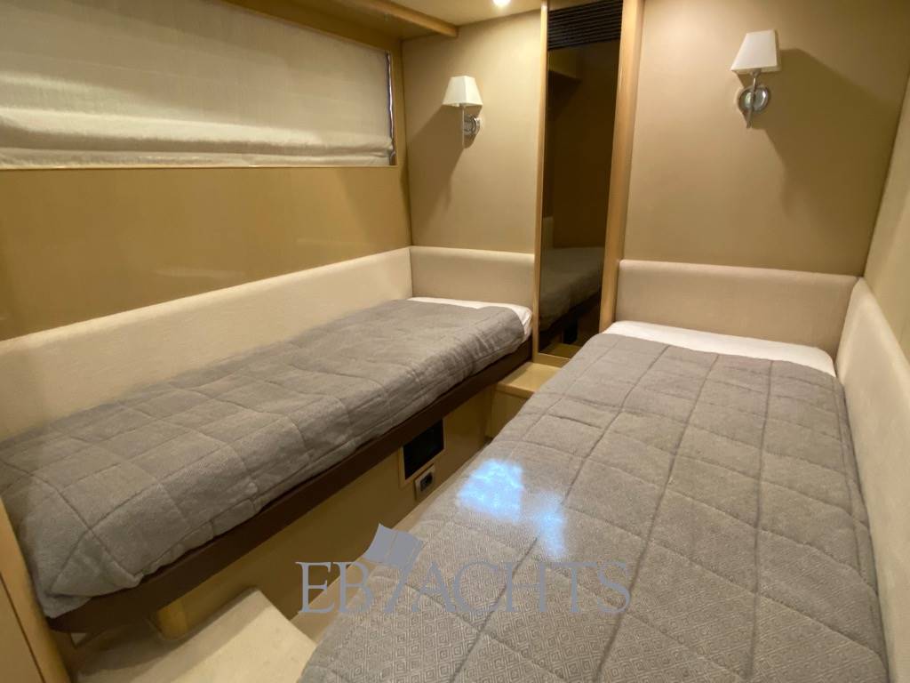 Notas internasImbarcazione luminosa, con grandi finestrature che permettono una visuale del mare da ogni ambiente interno. Diverse le zone esterne, come il flybridge che dispone di tre aree salotto separate, un lettino prendisole e un mobile bar completamente attrezzato. Il prendisole di prua è spazioso e confortevole. L’ampio pozzetto in teak è attrezzato con due lunghe sedute, tavolo estendibile e una piattaforma da bagno anche essa in teak Il layout interno è altrettanto confortevole. Comodi divani in salone, mobile per la TV a scomparsa con frigo e Ice maker e una zona pranzo separata per otto persone. La cucina e la dinette, situati sul ponte principale, sono disposte a pianta aperta, rendendo piacevole la preparazione dei pasti e la convivialità a bordo. La zona notte prevede 4 cabine ospiti e 3 bagni. La cabina armatore a centro barca con letto matrimoniale e toilette privata. La cabina VIP si trova a prua anche questa con bagno privato e box doccia. Due cabine ospiti di cui una con letti in piano e la seconda con letti a castello. Il bagno è condiviso. L' equipaggio si trova a poppa, con ingresso indipendente dal pozzetto, attrezzata con due posti letto e un bagno. Notas de la instrumentaciónElica di pruaElica di poppa Plotter gps Radar Pilota automatico Tridata VHF Bussola Plastimo Notas de armamentoAria condizionata in tutti gli ambientiDissalatore Icemaker Tv LCD in salone a scomparsa con movimentazione elettronica Doppi divani in pelle in dinette Frigorifero in dinette 2 x casse audio in dinette Zona pranzo interna con divano e tavolo fisso Impianto TV Cucina 4 fuochi a induzione Forno Lavastoviglie Frigo a colonna con congelatore Lavatrice Bosch Porta di uscita laterale lato dx Luci cortesia gradini zona notte Tv in cabina armatoriale Cassaforte Stereo con ingresso Usb Kenwood Mobile fly con piastra di cottura e lavello Ghiacciaia sul fly Passerella elettroidraulica Opacmare Pozzetto e gradini accesso camminamenti laterali in teak Pedana di poppa in teak Tendalini completi sul fly Copri cuscineria Copri parabrezza 3 x Wich Lewmar a prua e due a poppa Cabina equipaggio a poppa con ingresso da pozzetto con due posti letto bagno, lavandino e doccia |