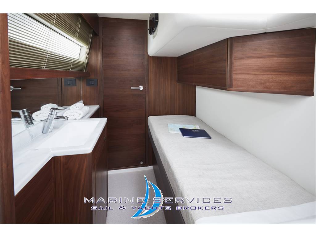 Notas internasFiniture legno interni Noce Satinato . Pavimento in legno di Noce all'ingresso del salone e zona cucina , Moquette chiara zona living e cabine . Salone con divani in pelle. Cucina all'ingresso del salone , dotata di lavastoviglie, forno combinato , Frigorifero e Freezer , Lavastoviglie, Piastra cottura induzione. Cabina ospiti di Sinistra con letti singoli convertibile in matrimoniale elettricamente. Cabina armatore a centro barca con bagno privato, cassaforte , Tv . Cabina Vip Matrimoniale a Prua con accesso a bagno con doccia. Aria condizionata i tutti i vani Zanzariere per oblo' apribili Notas de la instrumentaciónStrumentazione completa Garmin in doppia postazione - interna e su Flybridge : GPS , Schermo Multifunzione , Radar XHD color 24", VHf Internazionale, Autopilota.Contametri catena su FlyDisplay per stabilizzatore giroscopico Seakeeper Tv in salone a scomparsa , a parete nelle cabine Impianto stereo con Casse interne ed esterne Notas de armamentoElica di Prua e PoppaStabilizzatore Giroscopico Seakeeper Allestimento Cabina Marinaio Teak completo incluso Flybridge Plancetta di poppa affondante idraulica Passerella idraulica a scomparsa Generatore Maggiorato Onan illuminazione esterna Upgrade Aria condizionata Lavastoviglie Lavasciuga Ice maker Cuscinerie esterne complete di prendisole a prua con schienali reclinabili Coperture esterne per mobili e sedute pozzetto poppa e su flybridge Bimini top apribile elettricamente Chiusura invernale poppa |