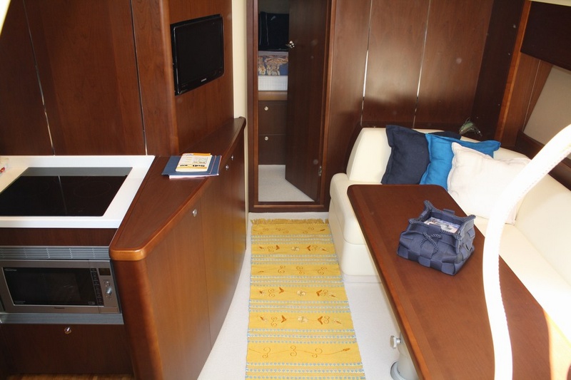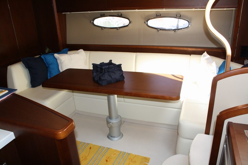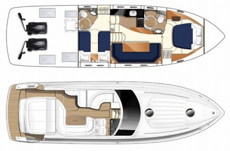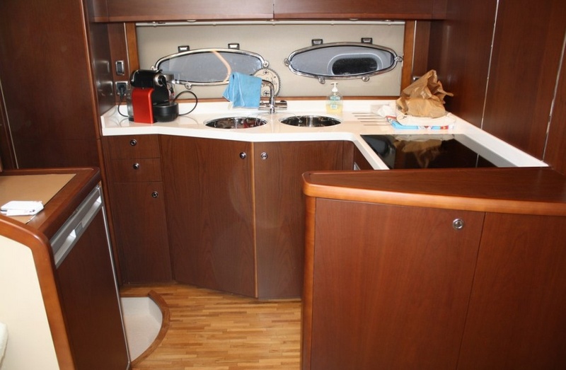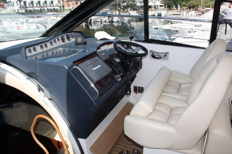 Notas internasNotas de la instrumentación- Raymarine Piloto automático - GPS / plotter Raymarine - VHF Simrad - Sonda Raymarine profundidad.Notas de armamento- Generador Onan - aire acondicionado - proa - Pasarela hidráulica - la apertura de garaje de popa electro - Electric capota - Controles electrónicos - El gabinete de cabina con placa vitrocerámica, nevera y fregadero - en la cabina y la cubierta de popa teca - reflector - TV LCD en el salón - estéreo con reproductor de CD. |