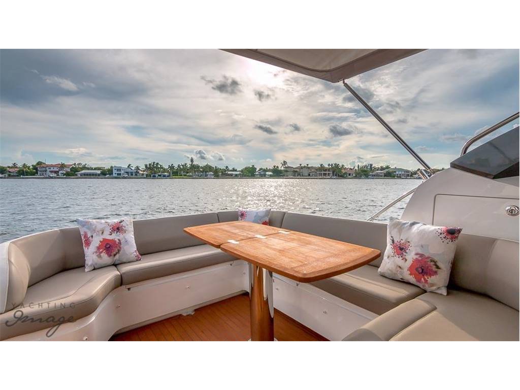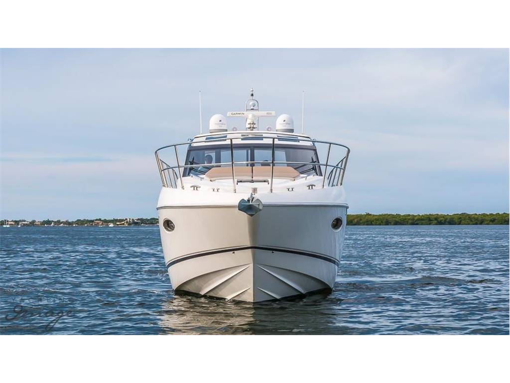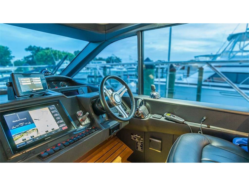 Stunning V48' express cruiser Captain well maintained. Low hours (280) extended warranty until 4/2019 on Twin Volvo 435hp IPS 600's w/pod drives. |