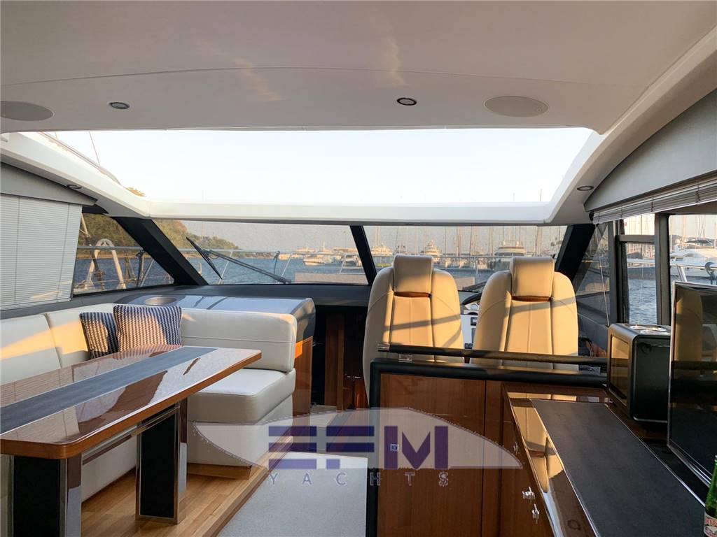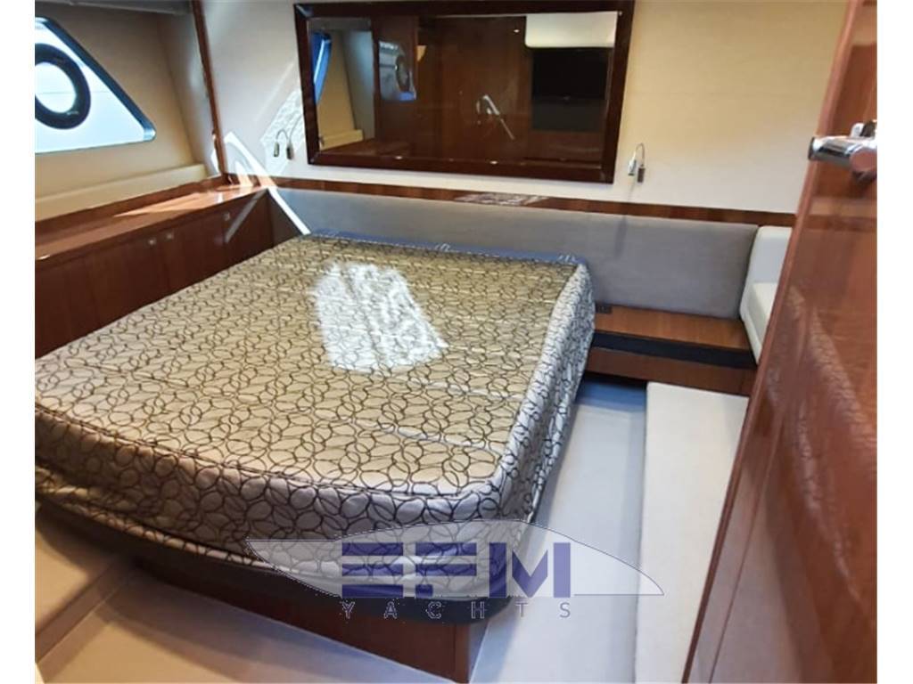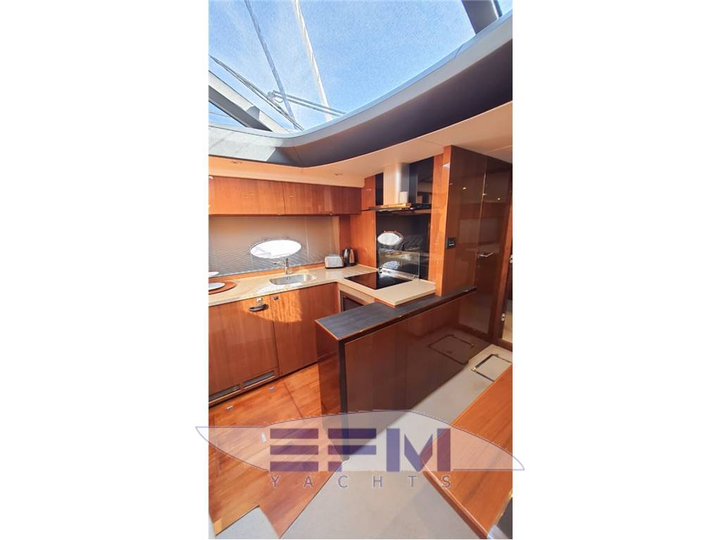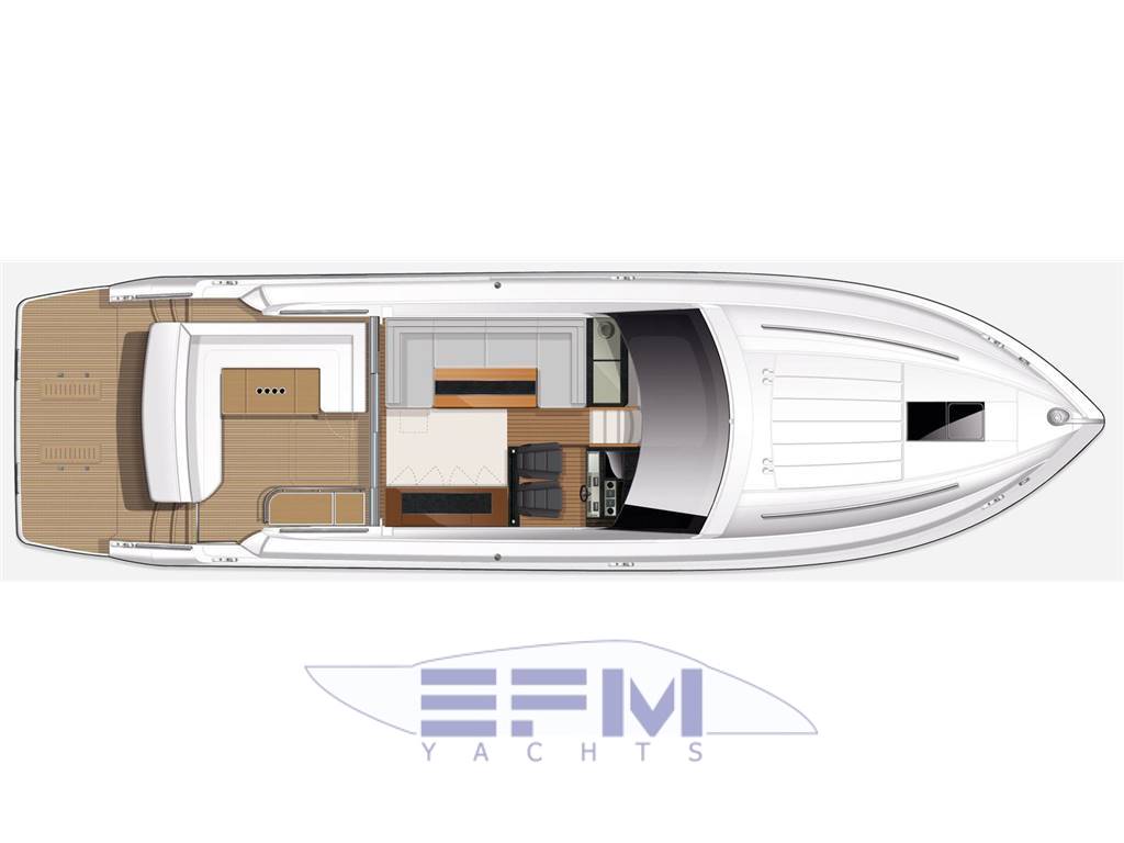 Notas internas· Teak bathing platform, cockpit and steps to side decks · Hydraulic bathing platform · Reversible electric anchor winch in the bow of the yacht and Delta anchor 20 kg · Extended anchor chain (total length 50 meters) · Stainless steel mooring cleats and handrails · Remote controlled floodlight Interior Decoration · Wooden floor in saloon, kitchen area and main helm area · Metal blinds for all windows · Interior trim in glossy dark walnut · Leather upholstery of the helm seats · Leather upholstery sofas in the lower and upper salon Upper Deck Salon · Opening doors between cockpit and saloon · U-shaped sofa and dining table · Chest of drawers with glass and storage space for bottles · Electric opening roof · Stereo radio / MP3 with speakers in saloon and cockpit · TV with a diagonal of 32 'with a system of descent and ascent Cockpit · U-shaped seat with folding teak table (table on telescopic leg with height adjustment) · Instead of the crew cabin, there is a place for storing equipment · Shower with hot and cold water on the bathing platform · Wetbar including sink, refrigerator, storage lockers and ceramic hob · · Liferaft storage box · Shore power inlet, 240V · Locker with remote fuel taps · Aft awning Lower Deck Lounge · L-shaped sofa and dining table (table with height adjustment to create an extra bed) · 32 '' LED TV, DVD, Radio / MP3 Electrical control panels 24 V and 220/240 V · Lockers for storing things Galley · 3-zone ceramic plate · Combined microwave / oven · Stainless steel sink · Fridge-freezer · Garbage container · Storage cabinets, drawers and lockers Cabins · Openable portholes in all cabins and bathrooms · All cabins are equipped with 220/240 V sockets · Spring mattresses · All bathrooms are equipped with showers, electric toilets, extractor hood and 240 V sockets Master Cabin · Large double bed with drawers downstairs · Wardrobe with shelves · Sofa on starboard side · Lockers and storage boxes. · Overhead and individual bed lighting · Bathroom · 26 '' TV VIP Cabin · Two single beds with the possibility of combining into a double · Wardrobe · Lockers for storing things · Top hatch with integrated curtain · Overhead and individual bed lighting Notas de la instrumentaciónNavigation & PowerFuel System :· Dual fuel tanks 1665 · Fuel filters Power and Drive Systems: · 4-bladed propellers made of nickel-aluminum bronze · Bow and stern thruster · Electronic engine and gearshift control · Waterless shaft seals · Engine room exhaust fan with electronic time setting Navigation Equipment · Double steering seats ·Electric opening window · Engine controls: including fuel level indicators, engine control sticks and rudder position indicator · Navigation system including VHF / RT, depth sounder with warning system and magnetic compass · Control system for wipers, bilge pump, anchor winch and trim tabs (with indicator) Raymarine Advanced Navigation Package: Raymarine i70 display (for speed, distance, depth, temperature, etc.), Raymarine p70R autopilot, Raymarine e125 chartplotter with GPS, Raymarine HD color radar with 48 ”4Kw structure scanner · Remote controlled floodlight Notas de armamentoGenerator & Electrical220/240 Volt Generator ONAN Diesel generator with increased power 11 kW in its own soundproof casing with water-cooled exhaust with special noise reduction · Inlet for shore power in cockpit locker with storage for cable · Polarity check system 24 Volt Electrical System · 4 batteries for starting the engine · 4 heavy duty auxiliary batteries · LED lighting · Reversible air conditioner (hot / cold) · Anti-fogging system for windows in front of the helm station Fire Safety Fire extinguishers · Automatic / manual fire extinguishers in the engine room with manual control · Hand-held fire extinguishers in cabins, kitchen area and saloon Water System Water heater with a volume of 50 · Water level indicator Bilge Pumps · Automatic electric bilge pumps · High performance manual bilge pump with valve |