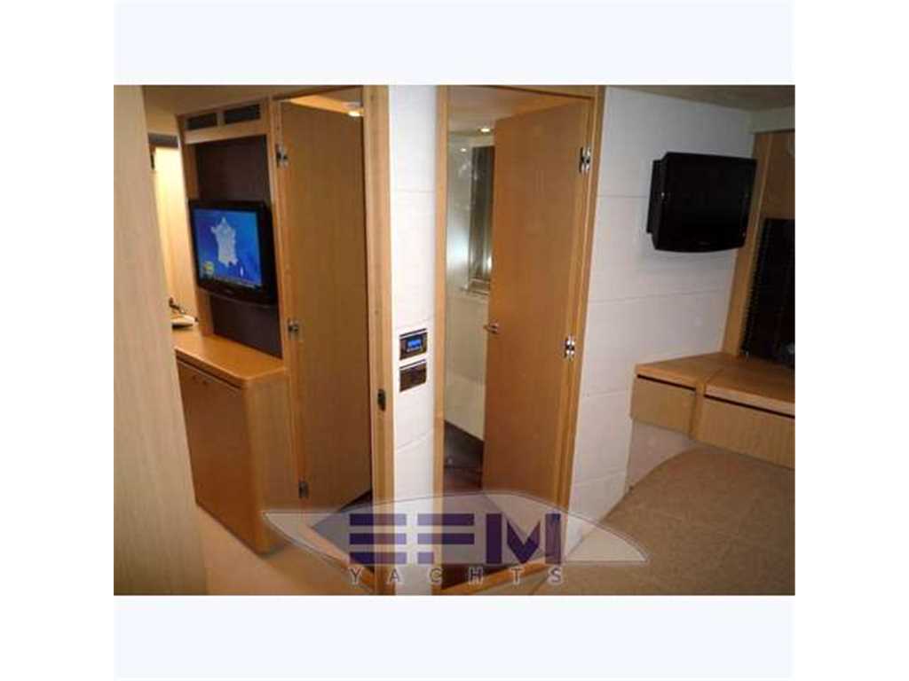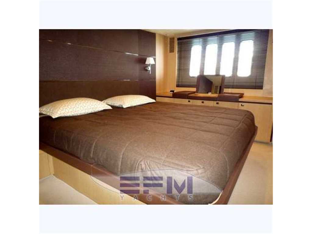 Notas internasIl ponte di coperta è progettato per poter soggiornare all'aperto in modo confortevole, indipendentemente dal fatto che si desideri l'ombra o l'esposizione al sole. C'è un grande prendisole poppiero a tre posti, con tanto di cuscini poggiatesta. A questo si aggiunge la classica area sul ponte di prua. C'è poi il salone interno, che all'occorrenza può essere vissuto come zona aperta, facendo scorrere il tettuccio apribile. Il living sul ponte principale si estende in un'area estremamente illuminata dalle grandi superfici trasparenti. La zona pranzo con la dinette e la cucina a L, invece, sono disponibili sottocoperta. Per la notte il Princess V62 offre tutta l'abitabilità e l'occorrenza per il tempo libero che ci si aspetta da un 20 metri. Tre cabine con l'armatoriale a centro barca su tutto il baglio, infatti, completano il layout del ponte inferiore. Il tutto arredato con un gusto gradevole e moderno INTERIOR FINISH Furniture finished in a choice of Serotina - Cherry or Light Oak with either a satin or high gloss finish. Walnut is available as an option - Galley in choice of granite or marble finish - Bathroom worktops with granite or marble finish - Choice of upholstery fabrics, carpets andcurtains from co-ordinated range - Timber-laid galley and helm floors SALOON Full air-conditioning - U-shaped sofa with coffee table - Sideboard unit incorporating LCD TV with powered lift linked to surround sound system, refrigerator, icemaker and bottle & glass storage - Forward dining area - Blinds, curtains or sunscreens to all windows and doors - Overhead downlighters - Electric hardtop sliding roof -Stainless-steel framed triple sliding saloon doors GALLEY Granite or marble worktop - Stainless-steel sinks with Monobloc mixer tap - 4-zone ceramic hob - Extractor fan - Combination microwave/conventional oven with grill - 8 place dishwasher - Full height fridge/freezer - Storage cupboards, drawers and lockers - Waste bin - Combination washer/dryer and storage area below stairway ACCOMMODATION All cabins feature opening and/or fixed portholes, 240v power points and airconditioning - All bathrooms feature opening portholes, fresh water Vacuflush toilets with holding tank and 240v shaver points OWNER’S STATEROOM Large double bed - Dressing table - Walk-in wardrobe - Sofa - LCD TV with surround sound entertainment system - Drawers, cupboards and storage lockers - Overhead and individual berth lights - En-suite bathroom : Washbasin with Monobloc mixer tap - Separate shower cubicle with automatic shower pump-out - Extractor fan - Mirror - Storage lockers - Bidet FORWARD GUEST CABIN Large double bed with drawers below - Dressing table with stool - Wardrobe with shelves - CD/Radio - Drawers, cupboards and storage lockers - Overhead and individual berth lights - Deck hatch and fixed skylights with integrated fly screen and blind - En-suite bathroom: Washbasin with Monobloc mixer tap - Separate shower cubicle with automatic shower pump-out - Extractor fan - Mirror - Storage lockers STARBOARD GUEST CABIN Two full-size single berths with sliding berth conversion to double - Wardrobe with shelves - Storage lockers - Downlighters and individual berth lights En-suite bathroom: Washbasin with Monobloc mixer tap - Separate shower cubicle with automatic shower pump-out - Extractor fan - Mirror Storage locker Additional access door from passageway CREW CABIN Full-size twin berths Storage lockers and hanging locker En-suite bathroom: Washbasin Shower with automatic pump-out and extractor fan Mirror Storage lockers Notas de la instrumentaciónClasse inglese con spirito mediterraneo; così si può definire il nuovo Princess V62, che si presenta in un eleganza rigorosa, abbinata a layout di bordo che esaltano gli spazi aperti. Non si desiderano nemmeno prestazioni più esigenti dato che se non si ritenessero sufficienti i due Caterpillar da 1015 cavalli, si può scegliere di installarne due da 1150 cavalli, guadagnando così tre nodi in più per un picco di 37 nodi di velocità massima.Il ponte di coperta è progettato per poter soggiornare all'aperto in modo confortevole, indipendentemente dal fatto che si desideri l'ombra o l'esposizione al sole. C'è un grande prendisole poppiero a tre posti, con tanto di cuscini poggiatesta. A questo si aggiunge la classica area sul ponte di prua. C'è poi il salone interno, che all'occorrenza può essere vissuto come zona aperta, facendo scorrere il tettuccio apribile. Il living sul ponte principale si estende in un'area estremamente illuminata dalle grandi superfici trasparenti. La zona pranzo con la dinette e la cucina a L, invece, sono disponibili sottocoperta. Per la notte il Princess V62 offre tutta l'abitabilità e l'occorrenza per il tempo libero che ci si aspetta da un 20 metri. Tre cabine con l'armatoriale a centro barca su tutto il baglio, infatti, completano il layout del ponte inferiore. Il tutto arredato con un gusto gradevole e moderno INTERIOR FINISH Furniture finished in a choice of Serotina - Cherry or Light Oak with either a satin or high gloss finish. Walnut is available as an option - Galley in choice of granite or marble finish - Bathroom worktops with granite or marble finish - Choice of upholstery fabrics, carpets andcurtains from co-ordinated range - Timber-laid galley and helm floors SALOON Full air-conditioning - U-shaped sofa with coffee table - Sideboard unit incorporating LCD TV with powered lift linked to surround sound system, refrigerator, icemaker and bottle & glass storage - Forward dining area - Blinds, curtains or sunscreens to all windows and doors - Overhead downlighters - Electric hardtop sliding roof -Stainless-steel framed triple sliding saloon doors GALLEY Granite or marble worktop - Stainless-steel sinks with Monobloc mixer tap - 4-zone ceramic hob - Extractor fan - Combination microwave/conventional oven with grill - 8 place dishwasher - Full height fridge/freezer - Storage cupboards, drawers and lockers - Waste bin -