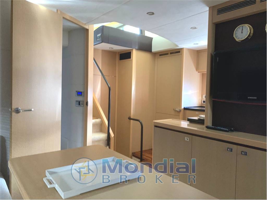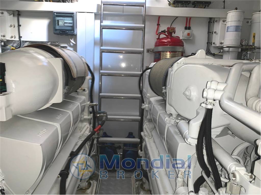 Notas internasCabina matrimoniale a prua con bagno e box doccia separato Cabina ospiti a letti in piano Ampia cucina con frigo freezer a colonna, tavolo pranzo a livello. Dinette con mobile tv frontale. Parquet interno iperfulloptional , versione 3 cabine con 2 servizi, interni in ciliegio chiaro. Notas de la instrumentaciónMTU Comandi motore elettroniciDisplay elettronici del motore MTU Bussola DISPLAY widescreen RAYMARINE E140W (EU) Plotter/GPS/Radar RAYSTAR 125 Plus Radar RA1048D – Array aperto digitale HD da 4 kW e 48 pollici VHF Faro orientabile con telecomando Sistema Life Tag (2 Life Tag; stazione base; allarme esterno) Computer/Centro di navigazione Vento, velocità e direzione Pilota automatico Ecoscandaglio Log-tachimetro Indicatore di posizione del timone TV LCD da 32 pollici con sistema di sollevamento elettrico collegato a BOSE nel salone superiore (include collegamento a TV e alimentazione 220 V) Lettori CD/DVD Radio Altoparlanti nella cabina di pilotaggio Sterzo elettroidraulico servoassistito Verricello elettrico per ancora con telecomando Controlli del correttore di assetto con indicatori Notas de armamentoSeakeeper 9Generatore ONAN da 13,5 kW/50Hz in sostituzione dello standard da 9,5 kW Presa di corrente da banchina Invertitore Caricabatterie Hard-top con tetto apribile Frigorifero Congelatore Lavastoviglie Forno Lavatrice Forno a microonde Piano cottura e cappa Lavatrice/asciugatrice nel sottoscala di passaggio Produttore di acqua dolce Pompe di sentina elettriche Pompe di sentina manuali Riscaldamento ad aria calda (D30W) con bocchette in tutte le zone degli alloggi e nei bagni Aria condizionata a ciclo inverso Pompa acqua mare Acqua calda rivestimenti in pelle Dissalatore Catalina Passerella (tipo telescopico nascosto da 3,5 m) Scaletta bagno Ulteriori 20 m di catena di ancoraggio da 10 mm per un totale di 60 metri Pozzetto in teak Teak sui passavanti Verricelli elettrici per movimentazione funi di poppa (2) Elica di prua (210 Kg.F) in sostituzione dello standard 170 Kg.F Elica di poppa (170 Kg.F) Cuscini prendisole di prua Lavaggio a pressione con acqua dolce del parabrezza Sistema di disappannamento del parabrezza mediante aria calda alimentata dal bollitore Faro orientabile con telecomando Cuscineria pozzetto Tavolo pozzetto Doccia in pozzetto Zattera di salvataggio Coperture del pozzetto |