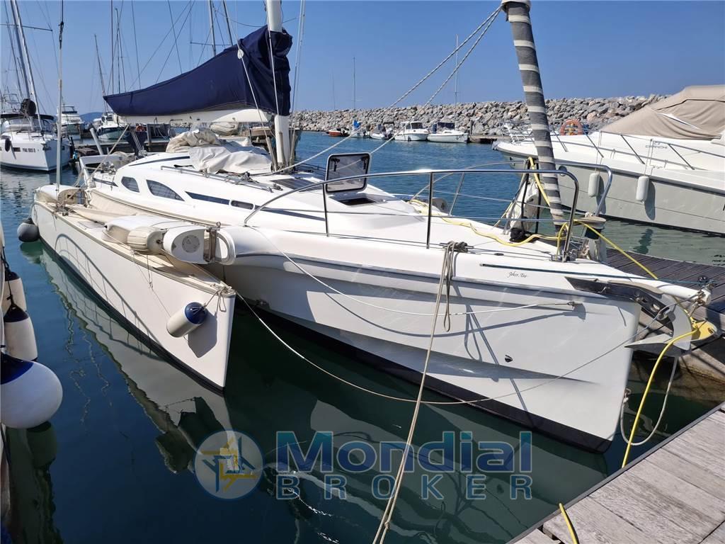 larghezza chiuso 3,84; 1° proprietario; velocità media a vela 9-10 nodi, massima raggiunta 23 nodi; certificato di inaffondabilità; bolinometro; VELE |