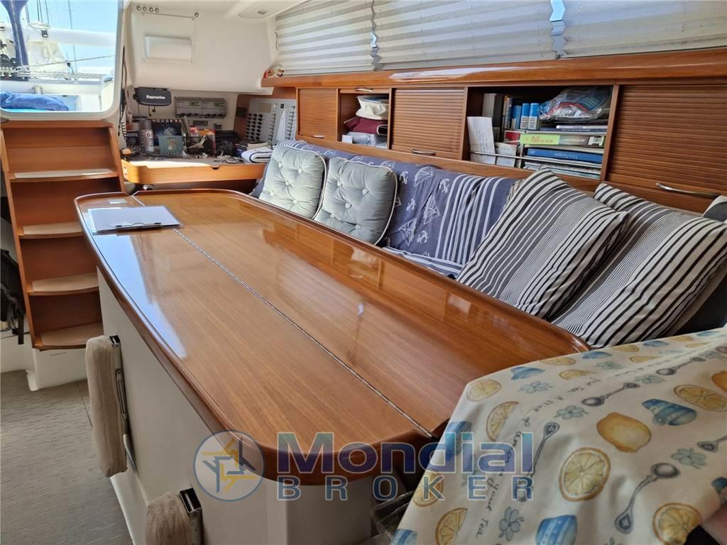 Notas internasNotas de la instrumentaciónBussola, Contamiglia, Ecoscandaglio, GPS, Pilota automatico (C80 Raymarine), Plotter, Radio VHF, Stazione vento.Notas de armamentoAllestimento tecnico e di coperta:Allarme motore, Doccia esterna, Elica di prua - bow thruster (retrattile), Pannelli Solari, Parabordi, Pompa di sentina elettrica, Pompa di sentina manuale, Presa 220V banchina, Salpa Ancore Elettrico, Scaletta da bagno. Dotazioni domestiche di bordo: Dissalatore (Sectra 30 l/h), Prese interne 12v, Prese interne 220v. Dotazioni di sicurezza: Dotazioni di sicurezza entro 50 miglia. Intrattenimento: Stereo. Cucina ed elettrodomestici: Cucina, Fornello, Frigorifero interno. Tappezzerie: Cappottina. Vele: Genoa (30 mq), Avvolgi Fiocco. Randa. |