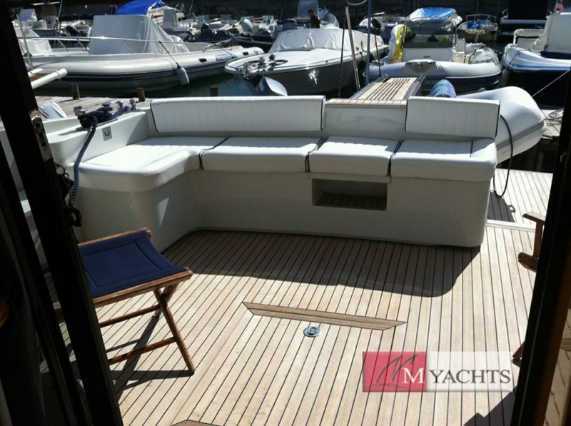 Notas internasNotas de la instrumentacióneco GPS VHF Piloto automáticoNotas de armamentogenerador de aire acondicionado 8.5 7 baterÃas de cabina y comedor con madera de teca pasarela de televisión por satélite lancha Yamaha 270 CV 6-Arimar cojines casco rÃgido al aire libre hecho de nuevo en 2009, Bimini |
