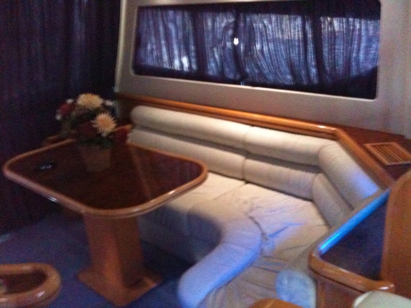 Notas internasCamarote de proa con baño y ducha, dos cabinas de invitados con camas planas y cuarto de baño con ducha doble acceso, la tripulación de cabina individual con el centro derecha barco de servicio con acceso desde el área de cocina, una guÃa de área con la izquierda, derecha dinatte lado lado de la cocina a la izquierda, el salón de popa derecho.