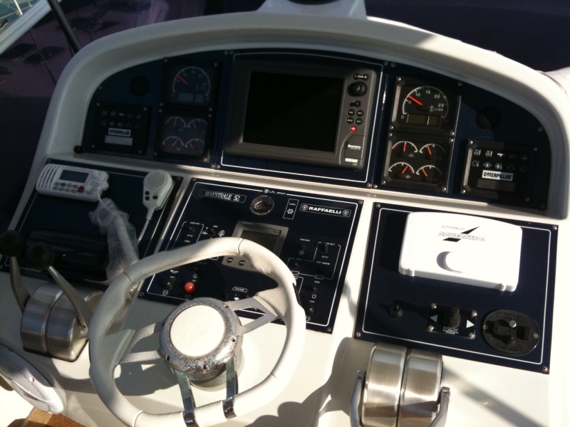 Notas de armamentoDoble aire acondicionado de ciclo, pasarela hidráulica con teca carabbottini Besenzoni, plataforma de baño de teca Fibra de popa, bañera de teca, caminan de lado y arco, la teca, decoración de interiores alfombra azul en los muebles de madera de cerezo, sofás de piel, crema, toldo azul con mosca estructura de barras de acero, con plena cobertura de tipo pescador de mosca transparente, de color tabaco cojines externa de 2009, escrito de acero, sistema de TV, equipo de música para volar el puente, cabinas de música y salón, rollabar, foco de búsqueda, molinete eléctrico, generador de 5 kw Kohler , enderezar, toma de 220v, hélice de proa controlados volar y guÃa interior, la mosca nevera, comedor y un doble en la balanza de cocina para volar con un primer tratamiento de VTR (tabla externa en efectivo), platos en la cocina + fregadero de acero vtrcc doble, cajas el agua gris y negro, tierna + FB 2008/2009, las maniobras de popa Molinete, escalera de baño empotrada en el lado derecho de la plataforma de baño, oscurecimiento de ventanas, interior de fibra óptica de color azul.