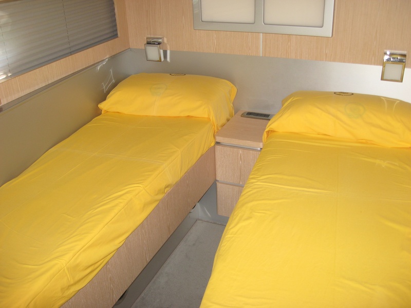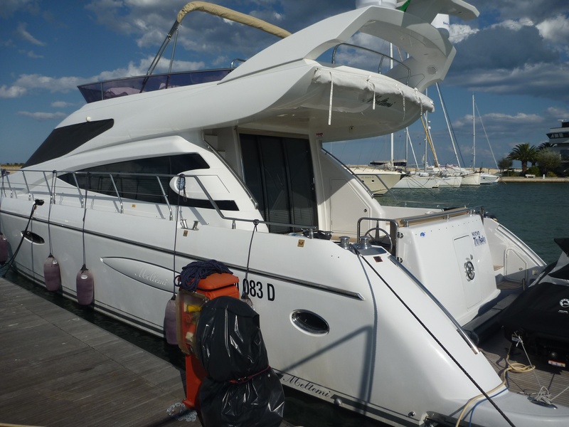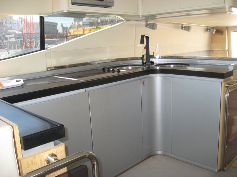 Notas internasNotas de la instrumentaciónGPS PLOTTER RAYMARINE VHF y 120 de COLOR RADAR, sonar de profundidad HÉLICE de proa HÉLICE STERN piloto automático TOUCH pantalla domótica sistema instrumental totalmente REPETIDOS en volar DESANILIZZATORE de antena de satéliteNotas de armamentoESPOSAS electrónico frÃo/aire acondicionado independiente en cada cabina popa playa plataforma teca teca cabina pescante para licitación de capacidad de 400 KG TV 32 pulgadas LCD en DINETTE LCD TV vÃa satélite con DVD en todas las cabañas decodificador SKY bodega vino nevera/congelador eléctrico del molinete con ancla y cadena deformación cabrestante DESANILIZZATORE espejo retráctil generador hidráulico de pasillo con CONTROL remoto seguro electrónico BEACON solarium cojines PARASOL TENDÓN completa BIMINI TOP sobre la marcha |