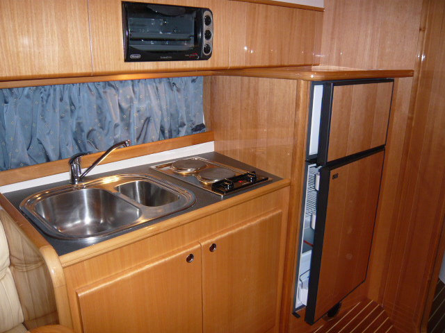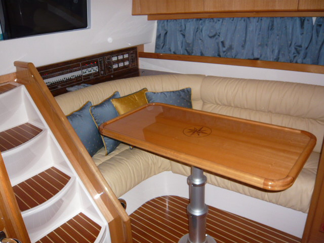 Notas internasNotas de la instrumentaciónpiloto automático, GPS, sonda, VHFNotas de armamentoGenerador Mase, ducha popa c / f, mesa de bañera de teca, calentador de agua, cargador de baterÃa, completo toldos azul, cojines, pasarela hidráulica, molinete eléctrico, nevera y fregadero en la bañera, heladera con freezer, Conexus la Tierra por satélite, televisión de plasma, horno de microondas |