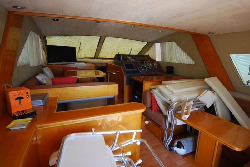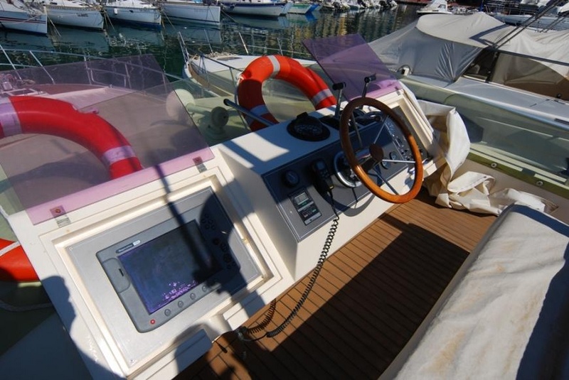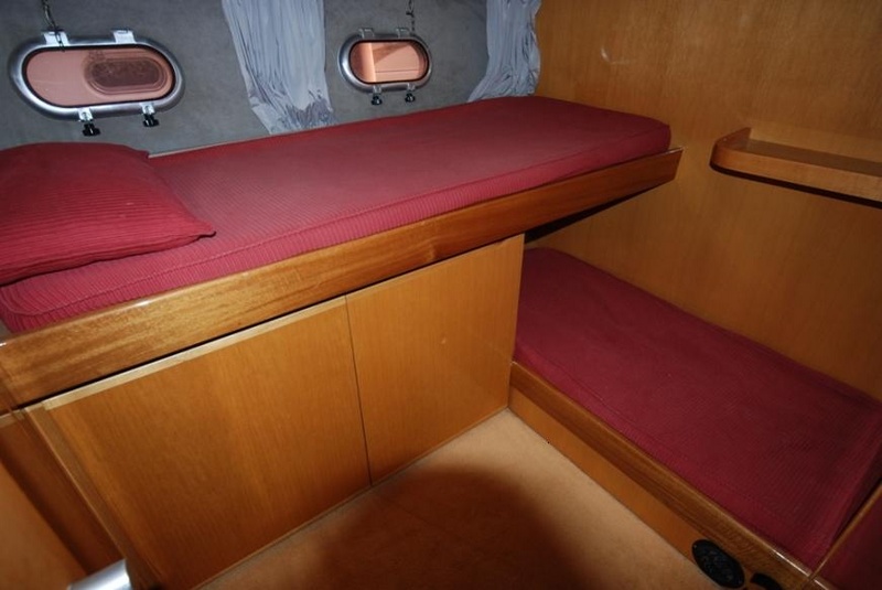BARCO marinero cabina en excelentes condiciones con la cubierta principal, plataforma de AFT y volar FLEXITEEK (2008) en 2006 a instalar nuevo par C7 de CATERPILLAR, unidad v disposición y adelanto de motores, instalación de nuevos CAMPANATI de inversores 2, versión 3 cabinas + inodoro 3:1, Nueva AQUAMET de ejes, lavadora-secadora y generador eléctrico entre 2007 y 2009 llevada a cabo el siguiente trabajo: rediseño de toldos y tapicerÃa de todos los externos e internos (incluyendo colchones)INSTALACIÓN de cubierta de lado FLEXITEEK y cielo TEAK COCKPIT, reemplazando el cargador, el calentador de agua y RADAR de TV-2 Instalación/RAYMARINE PLOTTER C120, independiente TV/satélite instalación TEL TRACKVISION-instalación horno además, motor fuera de borda, completo de pulido en casco PARQUET comedor de 2010 de instalación y reemplazo de las pilas |