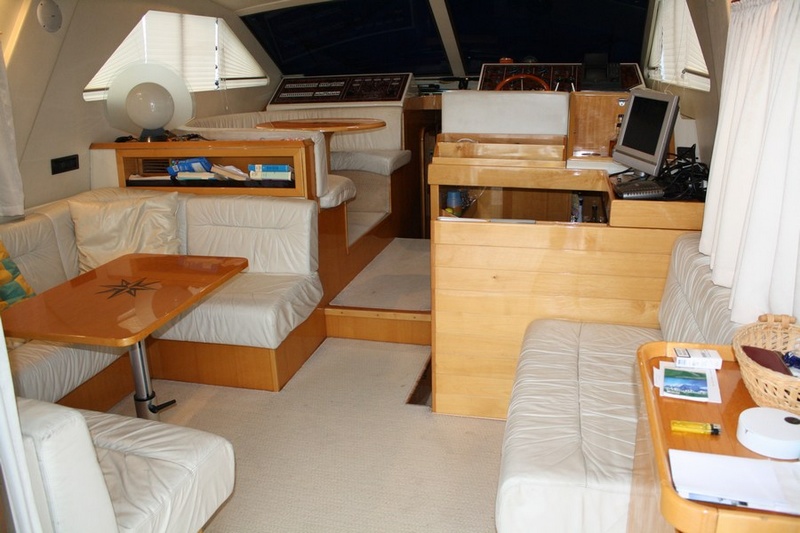 Notas internas-Interiores nueces de Tanganica, sofás de cuero. Notas de la instrumentación-VHF-profundidad sounder Garmin Eye4gps GPS asignación software-GPS/Chartplotter + Lorenz en piloto automático Furuno mosca-Nautiradar-Radar Furuno.Notas de armamentoGenerador Kohler-caliente y frÃo aire acondicionado-Pasarela hidráulica hidráulico-Teca-tierna Zodiac con motor de Yamaha 8 hp. |