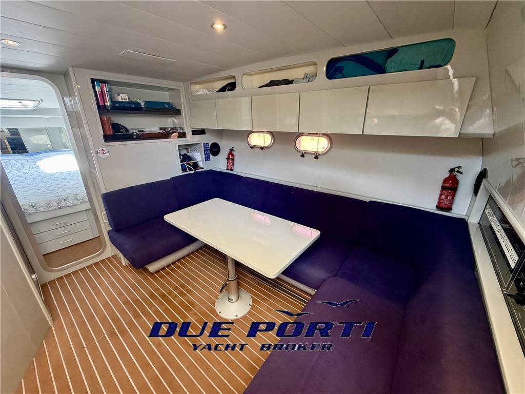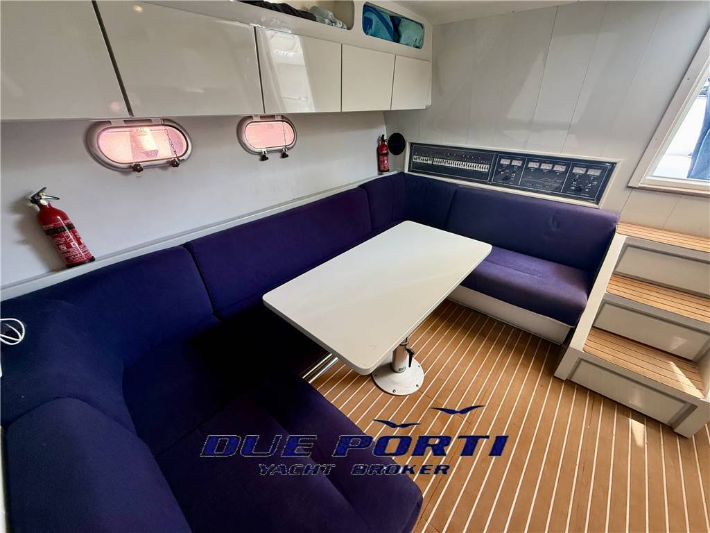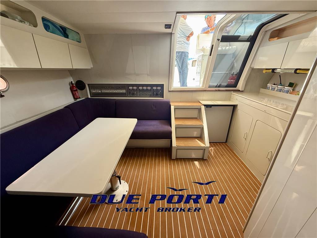 Notas internasBagno con doccia e doppio accesso Ampia dinette con tavolo da pranzo per 6 persone e divano a "C" Cucina attrezzata con lavello, frigo e fuochi a gas Parquet salone e cabina. Notas de la instrumentaciónLorenz 9" gps plotterRaytheon pilota automatico Garmin gpsmap 721 ecoscandaglio Shipmate VHF Flaps idraulici Salpa ancora elettrico Notas de armamentoTavolo pozzettoFrigorifero pozzetto Cuscineria completa in ottimo stato Tendalini completi |
