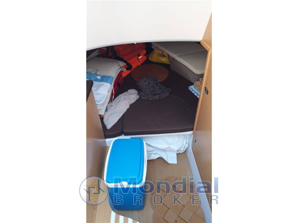 Porta d'ingresso scorrevole, Consolle centrale di guida, Vetro paravento alto, Scafo bianco, Delfiniera aperta a prora con scalino in teak, Passamano in inox, Verricello elettrico, Cuscineria color biscotto. UNICO proprietario. |