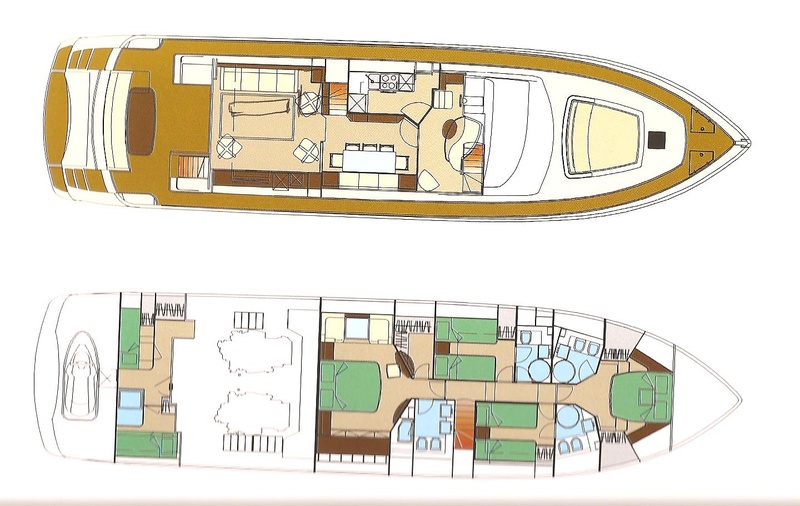 Notas internasColor de casco romano bronce-esencia de fotos de muebles de interior roble blanqueados a petición de gran salón con comedor separado, cocina, camarote principal en el centro del barco, cabina VIP en el arco, dos camarotes dobles con camas planas, todas con baño privado. Ãrea de equipo separado con una cabina sencilla y doble cabina, 1 cuarto de baño con ducha.