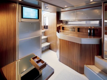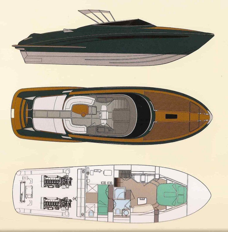 Notas internasNotas de la instrumentaciónPiloto automático Helice de proa VHF GPS sonda cadenaNotas de armamentoBar cabina con refrigerador y área de servicio en la cabina con lavadero y parrilla mesa de cabina de molinete de cabrestante, cabina toldo Stereo BOSE retráctil TV cocina cuero sofá seguro cabina nevera en la cocina 130 litros de hieloAire acondicionado horno estufa pasarela nadar escalera proa y popa Sundeck |