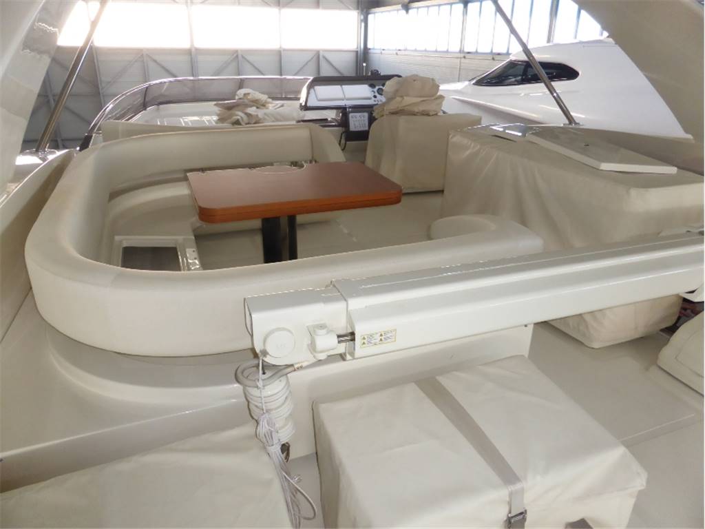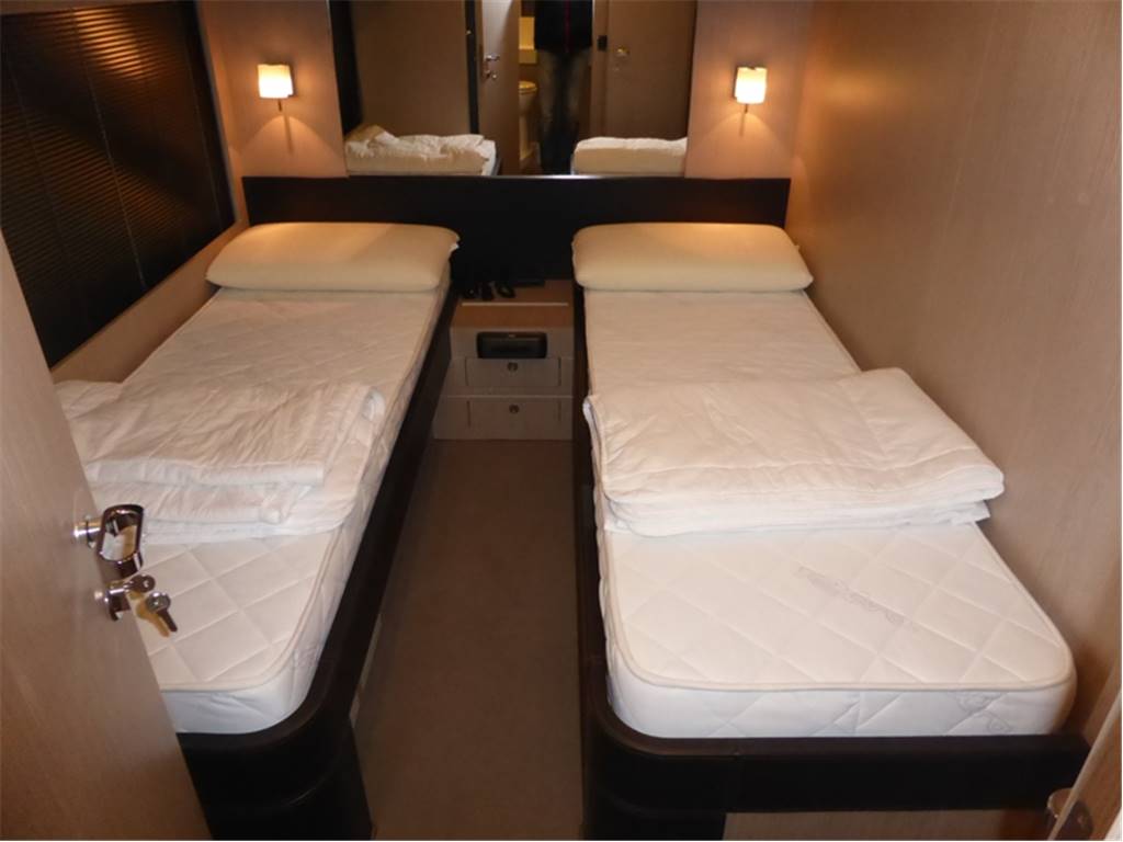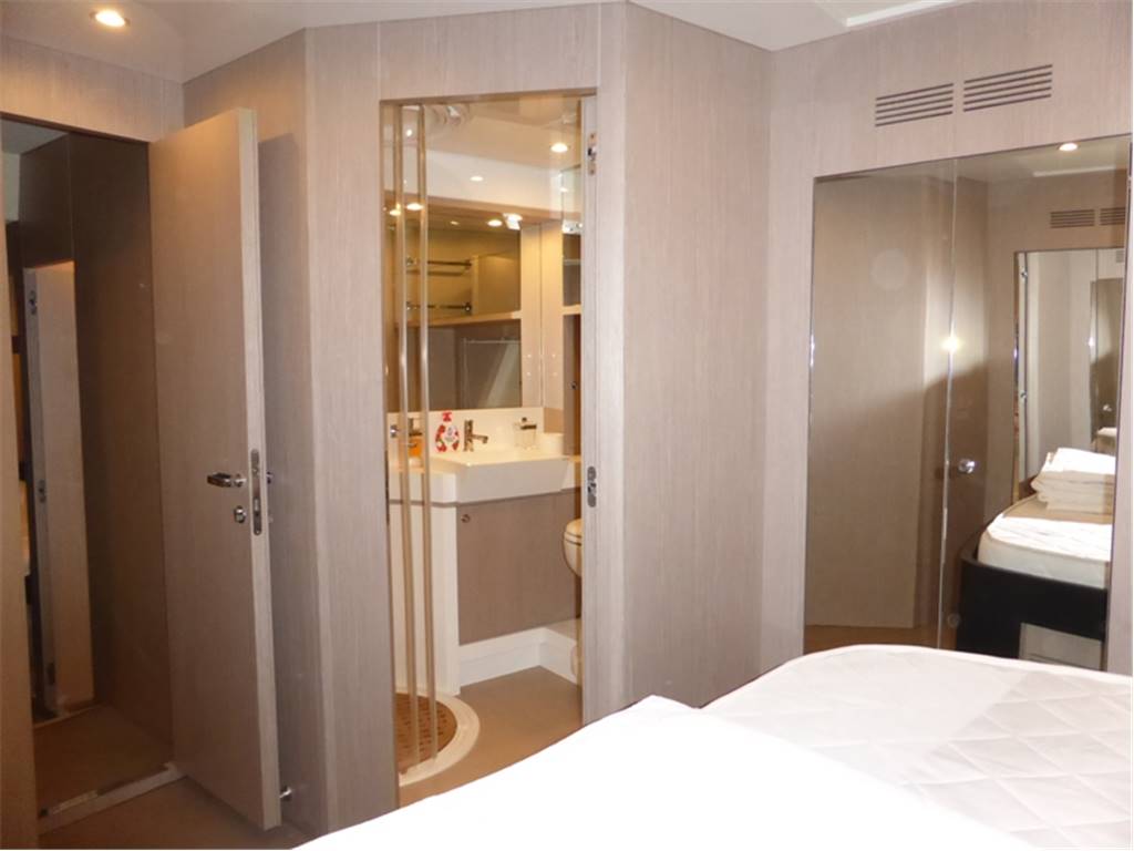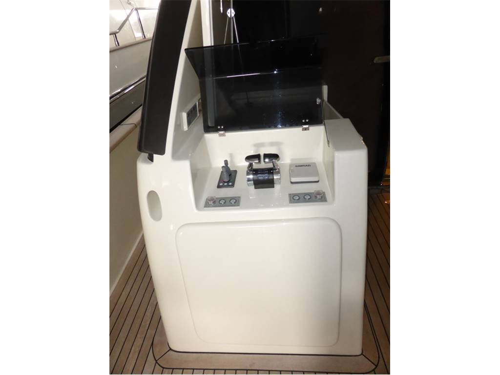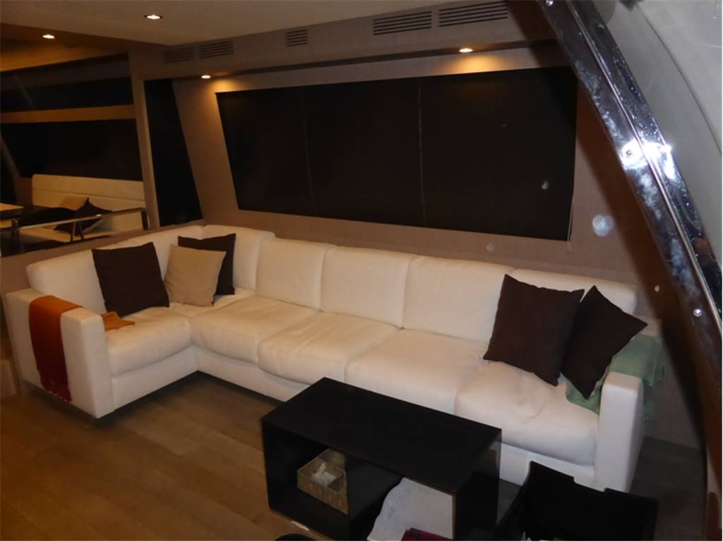 Notas internasVIP cabin in the bow with queen size bed, closets with doorstep lamp and mirrors shutters. 20” LCD TV, stereo with cd, mp3. Bathroom with lucid washbasin plate, glass washbasin with mixer, electric WC with bidet in ceramics, shower with teak grating, Plexiglas doors and stainless steel and seat fold in teak. 2 Guest cabins with twin beds, closet with drawers and doorstep lamps, 15” LCD TV, bathroom with lucid washbasin plate, washbasin in glass, wc with bidet electrical combined (the other guest bathroom has the bidet in ceramics) Crew area Complete kitchen, with sink, hotplates in pyroceram, extractor hood with external draining Dining area with crystal and stainless steel table for 8 people, chairs, leather sofa, furniture for the cutlery Salon with leather sofa, 2 armchairs, leather magazine rack, service mobile with drawer fridge, ice maker, plasma TV with lifting device, Bose stereo device with cd, mp3 leather and speakers in the salon, bridge, cockpit and fly. Notas de la instrumentaciónAdditional DescriptionPasserelle Teak flybridge Teak side decks Second generator Bimini hard top Teak laid cockpit floor Self draining Moulded staircase to flybridge Stern seating Stern safety door Engine room access hatch 2 x stern capstan winches 24v and fairleads Cockpit speakers Overhead cockpit lights 24v Low-level courtesy lights aft cockpit 24v Twin engines Soundproofing throughout engine room 2 x aluminium cross balanced fuel tanks with electric sending unit Separate fuel filters/water separators Automatic fire extinguishers Engine room and forward bilge flood alarms 2 x automatic bilge pumps 2 x automatic flood pumps 4 x extractor fans 24v Manual bilge pum Notas de armamento• Hull color: DARK BLUE• ARG Mitsubishi zero-speed stabilizer system (Anti-Rolling-Gyro) • SAT receiver KVH M7 • Teakdecks • Besenzoni Gangway hydraulic • Besenzoni crane hydraulic on fly bridge • Tender 340 + FB. • Hydraulic swim ladder • Stern thruster electrical 15 HP • Bow thruster electrical 15 HP • Electric stove Tecma • Air conditionTropical 144.000 BTU/h • Battery charger Mastervolt 100A 24V and Inverter • 2 Generators 1x20 1X16 kW Kohler • Bosch dish washer • Microwave and ofen • Miele washer/dryer • Fridge 221 ltr and freezer 93 ltr • PLASMA LCD TV in salon, 32“ LCD TV in master cabin • WI-FI system router on board • Third control station on aft • Full Raymarine electronics instruments • Crane on fly • Teak cockpit, bath platform , side walk and flybridge |