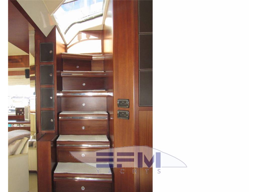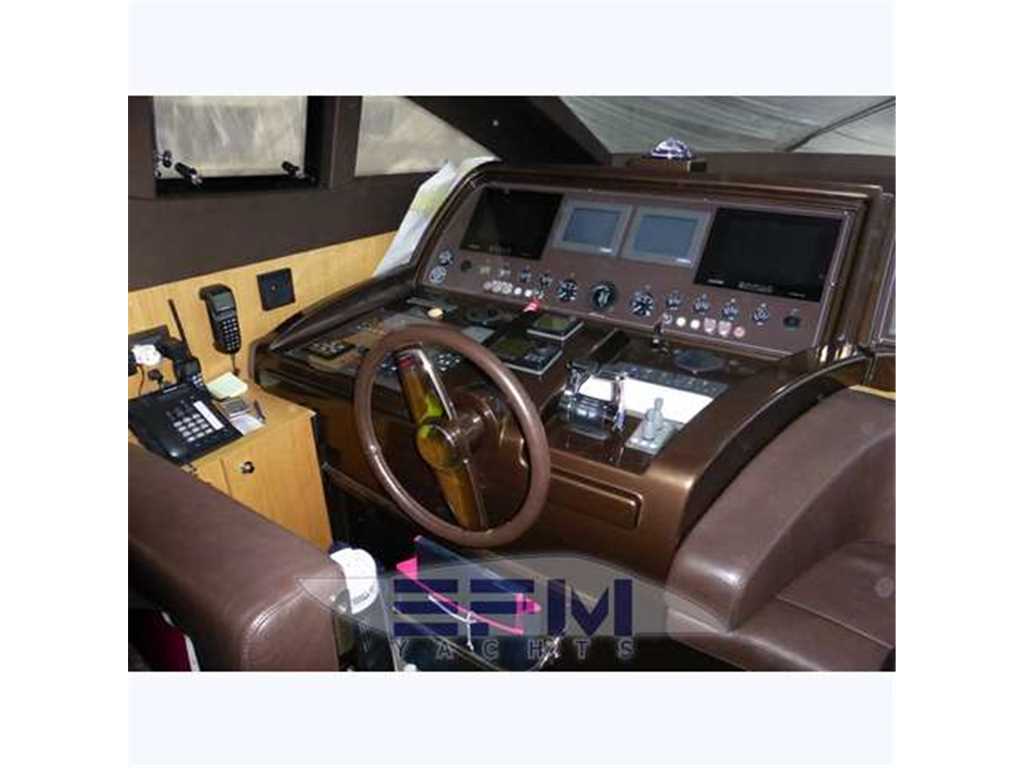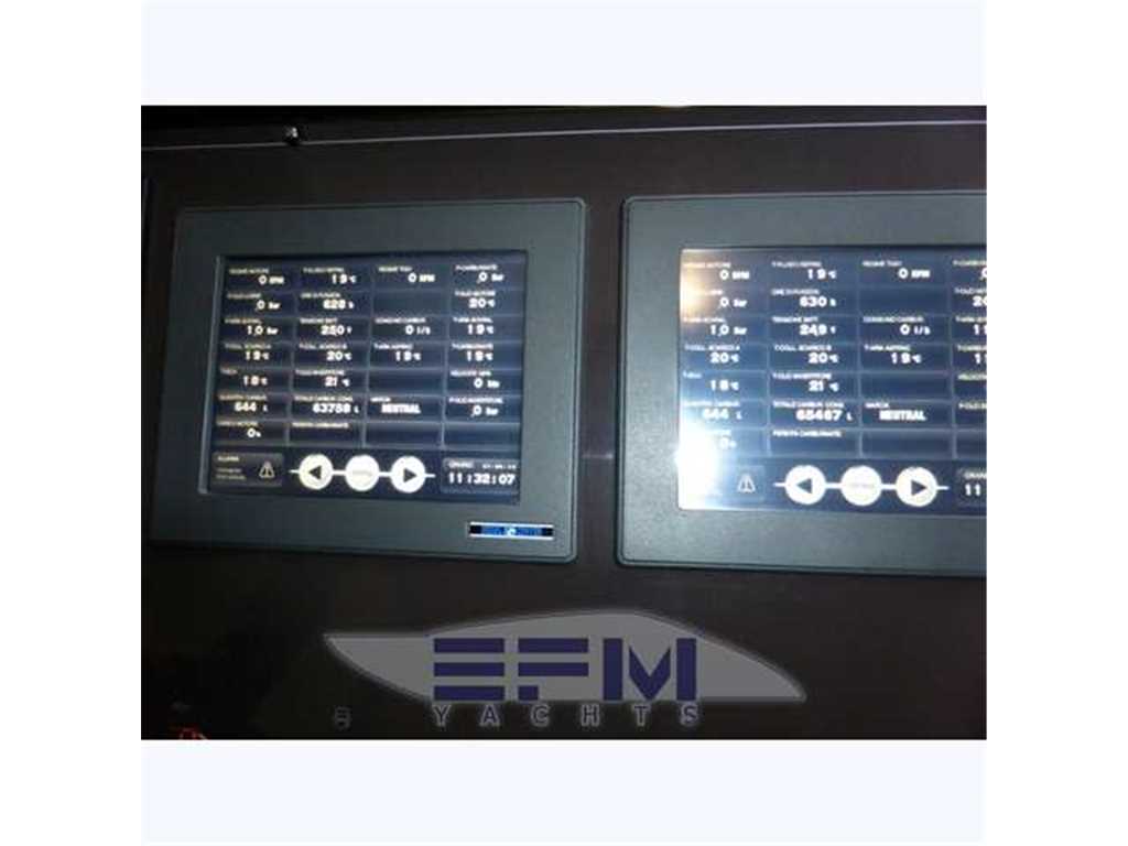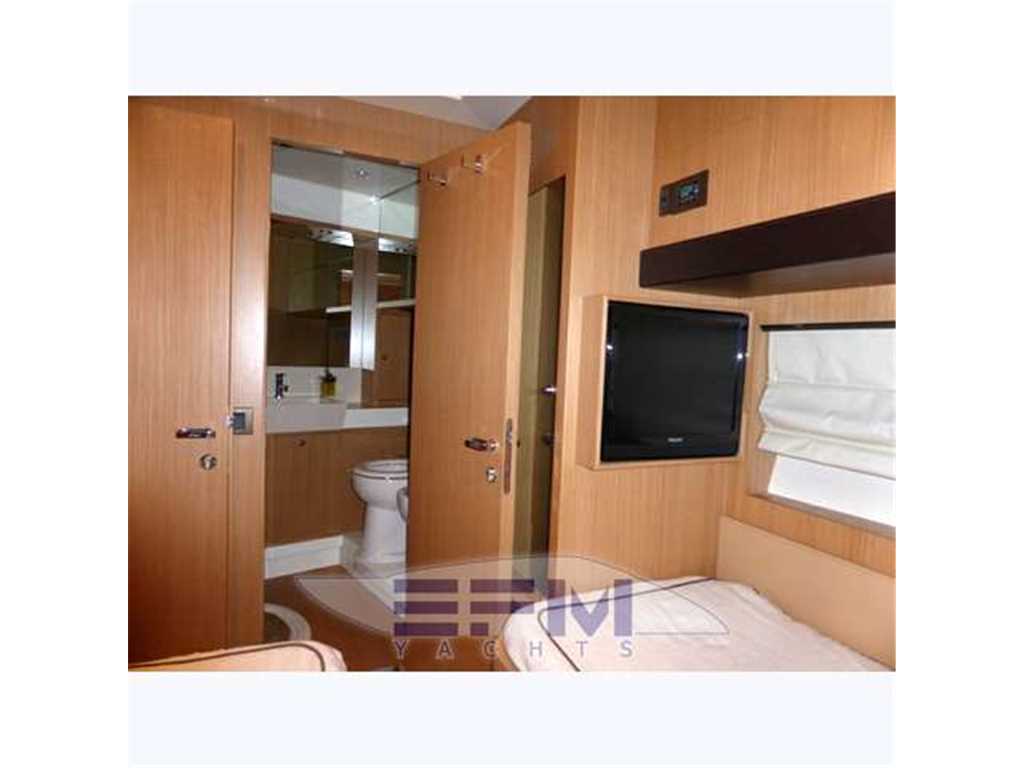 Notas internasInternal and external spaces have been designed to grant the maximum comfort during the mid-long range cruises. The aft door allows obtaining a large swimming platform, perfect to relax and practice sea sports. On the lower deck, the wide hull glazing offers an unusual view just at the sea level, letting through plenty of light into the three guest cabins and the full-beam master stateroom, which fitted with an office area, a vanity and a walk-in wardrobe. Every cabin has direct access to its en-suite head; the guest cabins are furnished with twin beds that can be replaced by a French bed Notas de la instrumentaciónOTHER SPECIFICS•4 Cabins layout all with bathroom ensuite •Master cabin bed king size with dress room, bathroom ensuite and shower box •VIP cabin bed queen size with bathroom ensuite and shower box •2 Guest twin cabin with bathroom •Crew quarter with 2 cabins for 3 + bathroom •Hull paint Roman Bronze + Riva Cream deck •Cockpit cover •Fresh water maker 130 l/h •Stern electric thurster 15hp •Electric reel for quay •Special extra deco of € 30.000 •Leather sofas •Teak cockpit •Teak deck •Hydraulic gangway •Hydraulic swimming ladder •Electric crane •Winch •Flaps •Bow thurster •Stern thurster •Awnings •Bimini top •Air conditioning •Electric oven •Microwave oven •Ice maker •Fridge •Freezer •Dishwasher •Washing machine •Tender 3,40m + FB 25HP Yamaha •TV LCD •DVD player + Stereo system •Antenna Sat •Full Electronic instruments SIMRAD: VHF , radar ,Auto pilot , Gps/Plotter , Eco sounder •Naviop system 15' LCS touch screen Notas de armamentoOPTIONAtlas Frequency converter for Europe / US / Worldwide shore power ARG Stabilizer keeps the ship stable when anchored SEARECOVERY water maker Underwater lights Bow and stern thrusters Raymarine and Map Tech electronics |