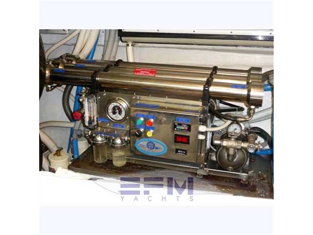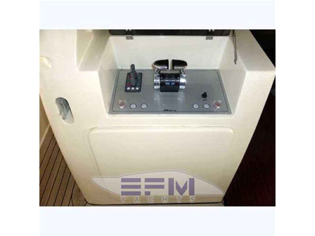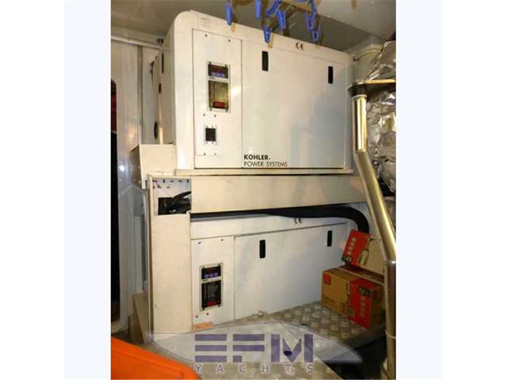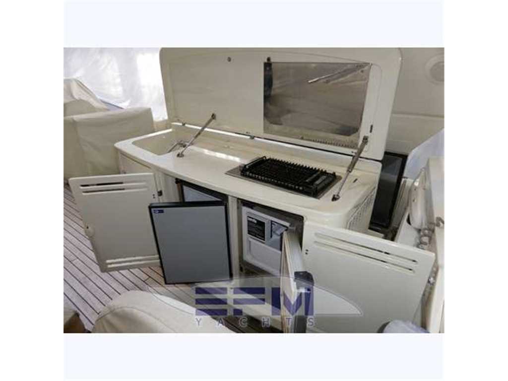 Notas internasInternal and external spaces have been designed to grant the maximum comfort during the mid-long range cruises. The aft door allows obtaining a large swimming platform, perfect to relax and practice sea sports. On the lower deck, the wide hull glazing offers an unusual view just at the sea level, letting through plenty of light into the three guest cabins and the full-beam master stateroom, which fitted with an office area, a vanity and a walk-in wardrobe. Every cabin has direct access to its en-suite head; the guest cabins are furnished with twin beds that can be replaced by a French bed Notas de la instrumentaciónOTHER SPECIFICS•4 Cabins layout all with bathroom ensuite •Master cabin bed king size with dress room, bathroom ensuite and shower box •VIP cabin bed queen size with bathroom ensuite and shower box •2 Guest twin cabin with bathroom •Crew quarter with 2 cabins for 3 + bathroom •Hull paint Roman Bronze + Riva Cream deck •Cockpit cover •Fresh water maker 130 l/h •Stern electric thurster 15hp •Electric reel for quay •Special extra deco of € 30.000 •Leather sofas •Teak cockpit •Teak deck •Hydraulic gangway •Hydraulic swimming ladder •Electric crane •Winch •Flaps •Bow thurster •Stern thurster •Awnings •Bimini top •Air conditioning •Electric oven •Microwave oven •Ice maker •Fridge •Freezer •Dishwasher •Washing machine •Tender 3,40m + FB 25HP Yamaha •TV LCD •DVD player + Stereo system •Antenna Sat •Full Electronic instruments SIMRAD: VHF , radar ,Auto pilot , Gps/Plotter , Eco sounder •Naviop system 15' LCS touch screen Notas de armamentoOPTIONAtlas Frequency converter for Europe / US / Worldwide shore power ARG Stabilizer keeps the ship stable when anchored SEARECOVERY water maker Underwater lights Bow and stern thrusters Raymarine and Map Tech electronics |
