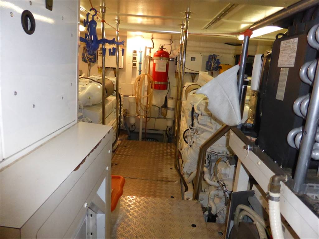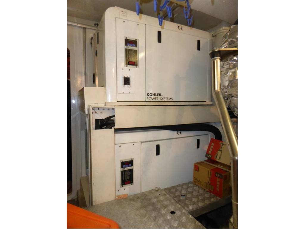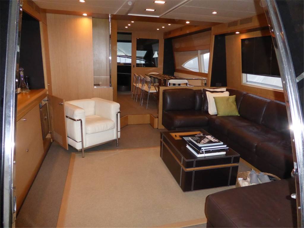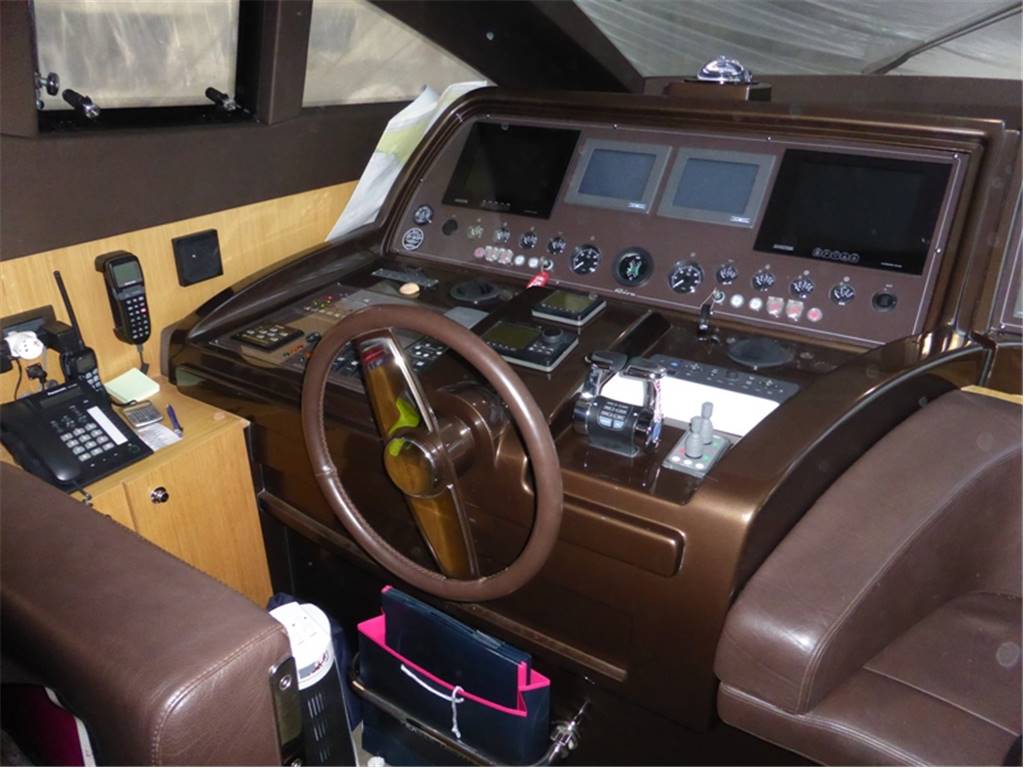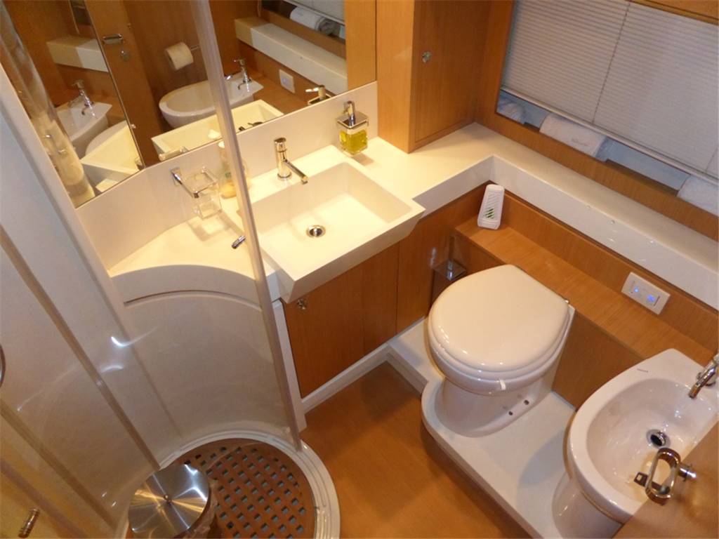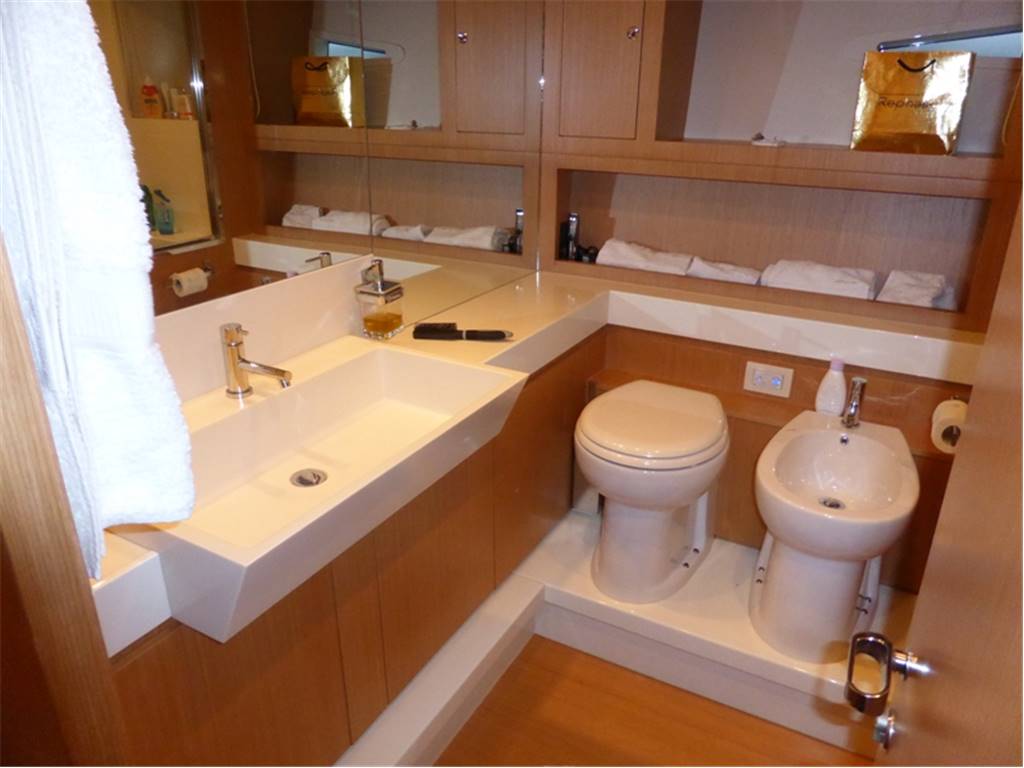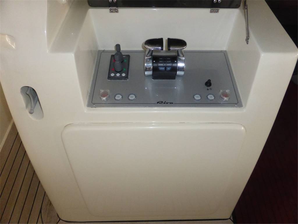 Notas internasCabina vip a prua con letto matrimoniale, comodini in essenza, armadi con luci di cortesia e ante a specchio,Tv LCD 20'', radio con cd, mp3, bagno con piano lavabo laccato lucido, lavabo in vetro con miscelatore, wc elettrico con bidet in ceramica, doccia con carabottino in teak, antine in plexiglass e acciaio inox 2 cabine ospiti con letti in piano, armadi con cassetti e luci di cortesia, comodini in essenza, Tv LCD 15'', bagni con piano lavabo laccato lucido, lavabo in vetro, wc con bidet combinato elettrico (l'altro bagno della cabina ospiti a il bidet in ceramica) Locale equipaggio Cucina completa, lavello, piastra in vetroceramica elettrica a induzione, cappa aspirante con scarico esterno Zona pranzo con tavolo in cristallo ed acciaio inox per 8 persone, sedie, divano rivestito in pelle, mobile contenitore posateria Salone con divano in pelle, n.2 poltrone, portariviste in cuoio,mobile di servizio con frigorifero a cassetto, ice-maker, tv al plasma a scomparsa, impianto stereo Bose con lettore cd, mp3 e altoparlanti nel salone, plancia, pozzetto e fly Master stateroom in the center of the boat with Queen size bed, drawers under the bed, walking closet with doorstep lamp, armchairs with central table in crystal, 32” TV, stereo device Bose with cd/dvd reader connected with the TV, bathroom with lucid washbasin plate, glass washbasin with mixer, electric WC with bidet in ceramics, shower with teak grating, Plexiglas doors and stainless steel and seat fold in teak. VIP cabin in the bow with queen size bed, closets with doorstep lamp and mirrors shutters. 20” LCD TV, stereo with cd, mp3. Bathroom with lucid washbasin plate, glass washbasin with mixer, electric WC with bidet in ceramics, shower with teak grating, Plexiglas doors and stainless steel and seat fold in teak. 2 Guest cabins with twin beds, closet with drawers and doorstep lamps, 15” LCD TV, bathroom with lucid washbasin plate, washbasin in glass, wc with bidet electrical combined (the other guest bathroom has the bidet in ceramics) Crew area Complete kitchen, with sink, hotplates in pyroceram, extractor hood with external draining Dining area with crystal and stainless steel table for 8 people, chairs, leather sofa, furniture for the cutlery Salon with leather sofa, 2 armchairs, leather magazine rack, service mobile with drawer fridge, ice maker, plasma TV with lifting device, Bose stereo device with cd, mp3 leather and speakers in the salon, bridge, cockpit and fly. Notas de la instrumentaciónAdditional DescriptionPasserelle Teak flybridge Teak side decks Second generator Bimini hard top Teak laid cockpit floor Self draining Moulded staircase to flybridge Stern seating Stern safety door Engine room access hatch 2 x stern capstan winches 24v and fairleads Cockpit speakers Overhead cockpit lights 24v Low-level courtesy lights aft cockpit 24v Twin engines Soundproofing throughout engine room 2 x aluminium cross balanced fuel tanks with electric sending unit Separate fuel filters/water separators Automatic fire extinguishers Engine room and forward bilge flood alarms 2 x automatic bilge pumps 2 x automatic flood pumps 4 x extractor fans 24v Manual bilge pum Notas de armamento•Addolcitore acqua•Uscite lavaggio addizionali pozzetto-fly •Asta pallone di fonda •Piastre ad induzione •Presa addizionale 220v-fly •Tenda garage •Portariviste salone •Decoder diff. da standard •Terza stazione di comando •Moquette main deck Anker •Poltroncina Timeless By Flexform •Tavolino modello Infinity •Fari subacquei specchio di poppa •N.2 fari sul rollbar •Avvolgicavo elettrico per banchina •Teak sul fly •Tavolo alza/abbassa sul fly •Ice-maker mobile bar sul fly •Seconda lavatrice zona equipaggio •Tenda chiusura garage •Divano a "C" realizzazione con parte poppiera maggiorata •Mobile passavivande •Ancora acciaio +100mt di catena in acciaio •Illuminazione n.2 faretti zona pranzo •Telefoni B&O 6000 in tutti gli ambienti •Decoder + sky salone + cabina armatore + vip •Termico antenna satellitare •Collegamento tv al sistema Tvcc, cabina armatore + comandante •Antenna Satellitare •Full Electronic instruments SIMRAD: VHF , radar ,Auto pilot , Gps/Plotter , Eco sounder •Naviop system 15' LCS touch screen OTHER SPECIFICS •4 Cabins layout all with bathroom ensuite •Master cabin bed king size with dress room, bathroom ensuite and shower box •VIP cabin bed queen size with bathroom ensuite and shower box •2 Guest twin cabin with bathroom •Crew quarter with 2 cabins for 3 + bathroom •Hull paint Roman Bronze + Riva Cream deck •Cockpit cover •Fresh water maker 130 l/h •Stern electric thurster 15hp •Electric reel for quay •Special extra deco of € 30.000 •Leather sofas •Teak cockpit •Teak deck •Hydraulic gangway •Hydraulic swimming ladder •Electric crane •Winch •Flaps •Bow thurster •Stern thurster •Awnings •Bimini top •Air conditioning •Electric oven •Microwave oven •Ice maker •Fridge •Freezer •Dishwasher •Washing machine •Tender 3,40m + FB 15HP Yamaha •TV LCD •DVD player + Stereo system |