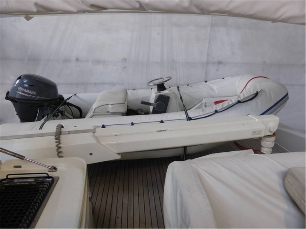 EQUIPAGGIAMENTO •Accesso alla plancetta di poppa con scalini in vtr e piano di calpestio in teak •Plancetta di poppa in teak •Prendisole di prua •Ancora in acciaio inox •Trasformazione tavolo fly in zona prendisole •Mobile fly con Ice-maker, grill, lavello •Calpestio fly in teak •Fissaggio tender sul fly •Avvolgicavo elettrico per banchina 100A •2 fari sul rollbar per illuminazione zona poppa •4 faretti sotto plancia poppa •Postazione a prua per pallone di fonda estraibile •Tenda norvegese per garage di poppa •Doccetta + miscelatore addizionale garage •Catena ancora da 100mt •Presa stagna garage poppa •Bimini prendisole di prua manuale •Parabordi e Copriparabordi completi •antenna tv KVH G6+ Radome+ V8+ 2 decoder •Telefono cordless •Tv 15'' LCd in cabina equipaggio •Tv 15'' Lcd in cabina comandante •Access to the stern bridge with stairs in vtr and planking level in teak •Stern bridge in teak •Sundeck in bow •Stainless steel anchor •Transformation in sundeck area of the fly table •Furniture in the fly with ice maker, grill and sink •Planking level of the fly in teak •Cable winding for quay 100A •2 lights on the rollbar for the illumination of the stern area •4 lights under the stern bridge •Awnings for garage •Shower + extra mixer in the garage •100 mt anchor chain •Socket in the stern garage •Manual sundeck bimini in the bow •Complete fender and its cover •Tv antenna KVH G6+ Radome+ V8+ 2 decoder •Cordless phone •Tv 15'' Lcd in crew’s cabin •Tv 15'' Lcd in captain’s cabin •Naviop •Epirb •Electronic chain counter •Raymarine •Electronic throttles •Multi system Raymarine St60 |