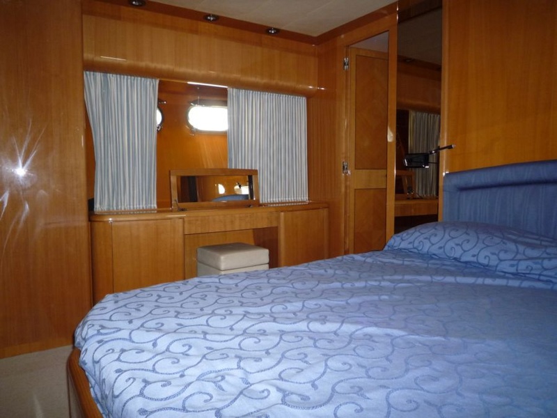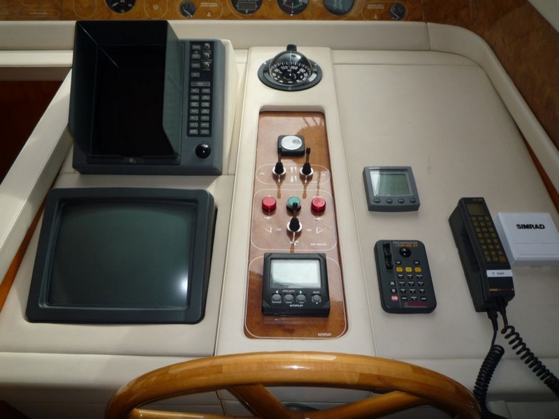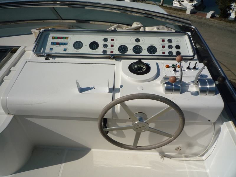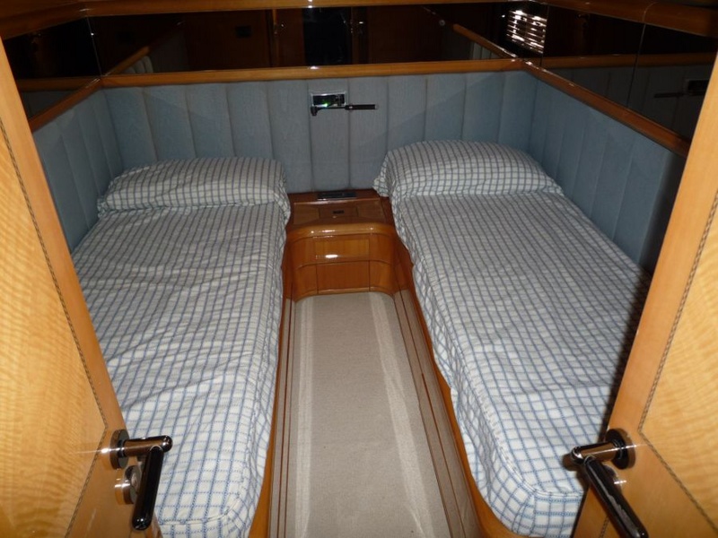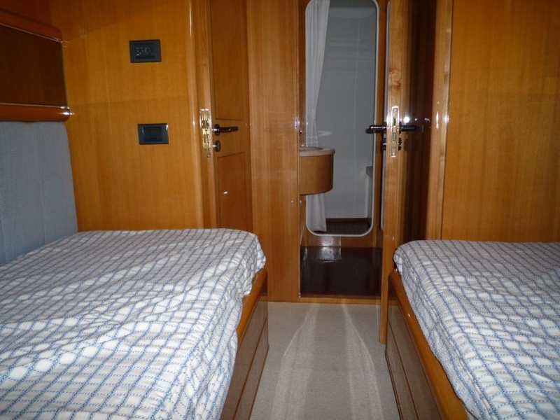 Notas internasBajando a la zona de dormir con un tyroviamo de escalera de madera fácil inclinarse la gran suite principal con cama King size y pedestales completo móviles, sofá, escribir mesa con silla, hermoso baño con revestimiento de mármol rosado con bidet y ducha con puerto de entrada local en crema de cristal alfombra pisos popa a estribor es la primera cabina de invitados con 2 camas y baño privado con ducha Rosa mármol recubrimiento... y dejó la segunda cabina de invitados con camas y baño privado con ducha Rosa mármol recubrimiento para proa extrema con entrada desde el exterior encontramos el alojamiento de la tripulación con dos camas separadas y baño con ducha-gran teca con teca mesa plegable y sillas plegables con tela y madera de teca. Mosca equipado con davit licitación, alo sofá cubierta de esquà y con sesión doble caseta. Pera con muebles con incrustaciones y pulido living comedor amplio piso teca y paneles de interior clásica dividieron en dos zonas claramente diferenciadas: la primera sala en forma de U con sofá asientos + piel mesa de madera, frente a la unidad de gran servicio con TV LCD 32 ' y máquina de hielos, el segundo cerca de la caseta con lado pporta Viareggio y la segunda abertura y mesa de madera en forma embutida con sofá de cuero en forma de L con 4 claro asientos cómodos, enfrente el timón a estribor con el timón y dirección-acceso al flybridge con madera de la cocina Local de escalera interna con puerta externa separada a Viareggio y electrodomésticos whirlpool completo: fregadero de acero inoxidable con dos tazones de fuente-heladera con freezer, el equipo de hielo, horno, extractor, lavavajillas - Bajando al área de dormir con una escalera de madera suave tyroviamo adelante el gran suite principal con cama doble y gabinete lleno de cajones, sofá, escritorio, baño privado con asiento con hermoso revestimiento de mármol rosado con bidé y ducha con puerta entrada alfombrados de crema cristal piso la popa a cabina de estribor invitado son terminar el primero con 2 camas y baño privado con mármol rosa de la ducha. y la izquierda el segundo invitado en cabina con camas y baño privado con ducha Rosa mármol recubrimiento para adelante extrema con entrada desde fuera es la cabina de tripulación con dos literas y un baño con independiente ducha gran cabina teca con gran mesa de teca y plegables sillas plegables tela y madera de teca. Volar alo pescante de embarcación equipada con un sofá cubierto con esquà y completa con asiento doble timón. Notas de la instrumentaciónCompletar la instrumentación electrónica sobre la marcha: repite gps Chartplotter gps trazador Lorenz-Raython mosca Fishfinder weatherfax radar antena-2 VHF + portable-Furuno 72 mgl-piloto automático Autohelm st 60 viento estación satélite tracvision antena de Radar Raymarine para satélite tv decodificador-Simrad Radar + 36 M 4 radio estéreo con cd-dvd-32 ' lcd Tv en la sala de estar + dvd y cd estéreo radio-control sistema esposas mecccaniche dirección equipo control administración-unidad profundidad analógico de la estación meteorológica más sólida VDO-intercom-hélice maniobra para arco-Completar la instrumentación electrónica repetida sobre la marcha: Lorenz gps gráfico plotter-gps-plotter-sonar en mosca Raython weatherfax-radar-2 VHF + portable-Furuno 72 mgl Autohelm piloto automático Raymarine ST 60 viento TracVision estación satélite antena de Radar para satélite TV decodificador +-36 M 4 estéreo de Radar Simrad-radio cD con DVD-32 ' TV lCD en Salón + dVD y cD estéreo dirección de radio control administración de sistema-esposas-equipos mecccaniche control motor analógico estación meteorológica sonar VDO-intercom maniobra "propulsor de proa: - Notas de armamentoLofran + cabrestante todavÃa 120 mt Bruce con equipos de seguridad completa de la cadena con seguridad 2 balsas-deformación Stern cabrestantes passerella idraulica-cojines para marcha de solarium y arco cubren completa cobertura para acristalamiento muebles y sofás maniobras de vuelo a hélice-arco bimini tops rollbar mosca con grúas y alo licitación o Jet-aire acondicionado en cada habitación con doble bomba de calor con cabina controlada por termostato,y teca pasillo passavanti hidráulica besenzoni-tripulación de arco con 2 camas y baño Kohler generador plus-ventiladores, extractores de aire en la cocina de motor habitación totalmente equipada con tina de acero inoxidable doble bacha,Doble mini,LAVAVAJILLAS,horno con capucha,microondas,cabrestantes de cabrestantes de lavadora-vida-máquina de hielo puños doble mecánica eléctrica Stern Beacon-luces completa lleno campista toldos para cierre de cabina,dirección almohadas arco y mosca,portada de sofás en la cabina y sobre la marcha,cubierta lateral copriparabrezza y Bimini top volar en cubierta de teca completo de lienzo en blanco,CABINA,plataforma de popa y escalera de teca mesa comedor mosca plegable cabina-LCD TV,DVD y VCR en altavoces estéreo vida sistema con cabina con control de seguridad de CD Autochanger-exterior cojines-completa equipo de radio y salón... RINA 2012 a do-Molinete de ancla Lofran Bruce con cadena m-120 + seguridad equipamiento completo con 2 seguridad deformación balsas cabrestantes popa gángster pasillo lleno cojines para flybridge y popa completa de cubierta con windows cubierta-tapa para muebles y sofás Fly-arco-propulsor agua maker hro 100 h/lt-flybridge bimini tops rollbar con grúa y sistema de licitación o personal de embarcaciones alo-aire acondicionado en cada habitación con doble bomba de calor termostato control cabina y cubiertas de teca-gángster pasillo besenzoni-alojamiento de la tripulación adelante con 2 camas y fans de extractor de baño más generador Kohler-aireadores en la cocina de habitación llena de motor con receptor doble bowl de acero inoxidable,nevera doble,LAVAVAJILLAS,horno con campana extractora,microondas,Sala de máquinas de lavar máqu