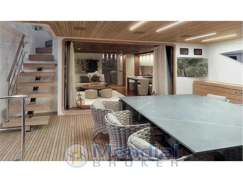 Sanlorenzo SD112 è nato dalla volontà di integrare la storica linea in vetroresina semidislocante di Sanlorenzo, denominata SD, con un esemplare che si collocasse tra i due modelli esistenti SD92 (28 metri) e SD126 (38 metri). Le esperienze maturate da Sanlorenzo con le oltre 30 imbarcazioni naviganti della linea SD hanno consentito di progettare un motoryacht che nasce già ampiamente collaudato, a testimonianza del grande equilibrio raggiunto tra design, volumetria e prestazioni nella progettazione dell’SD112. La sovrastruttura ha tre ponti, ma grazie ad una serie di eleganti innovazioni di design, ha un linea slim dall’aspetto di uno yacht con due ponti. La zona prendisole è molto spaziosa e può ospitare una grande vasca idromassaggio, e la zona relax. Oltre al salone, il ponte principale permette una sontuosa cabina armatoriale che domina la zona di prua, mentre il ponte inferiore può ospitare altre 4 lussuose cabine ospiti e l’alloggio dell’equipaggio. Lo stile inconfondibile e sofisticato del design Sanlorenzo è al culmine della costruzione di yacht a livello internazionale. In oltre 50 anni di storia del cantiere italiano è diventato sinonimo di eccellenza in termini di raffinatezza e attenzione al dettaglio, con conseguente raggiungimento del secondo posto nella classifica dei migliori costruttori di yacht oltre i 24 metri. |