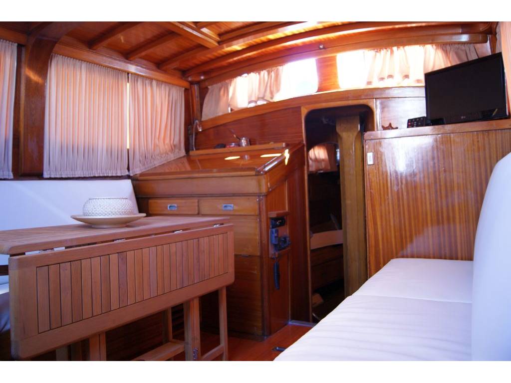 L'imbarcazione è stata oggetto di un importante restauro (2011-2013) certificabile. Impianti elettrico nuovo (Mastervolt-Victron), impianto idraulico nuovo (Whale), pilota automatico Raymarine nuovo, gruppo elettrogeno Fisher Panda nuovo, pompe di sentina (3) nuove, boiler Isotemp inox nuovo, Webasto nuovo, nuova marmitta inox, chartplotter, VHF wirless nuovo, televisore LED 21" con plotter integrato SEIWA nuovo, WC nuovi, cagnaro completo totale nuovo SUMBRELLA e tanti altri accessori nuovi. L'imbarcazione è compresa di copia dei progetti originali e documentazioni dell'epoca. Costantemente manutenuta. |