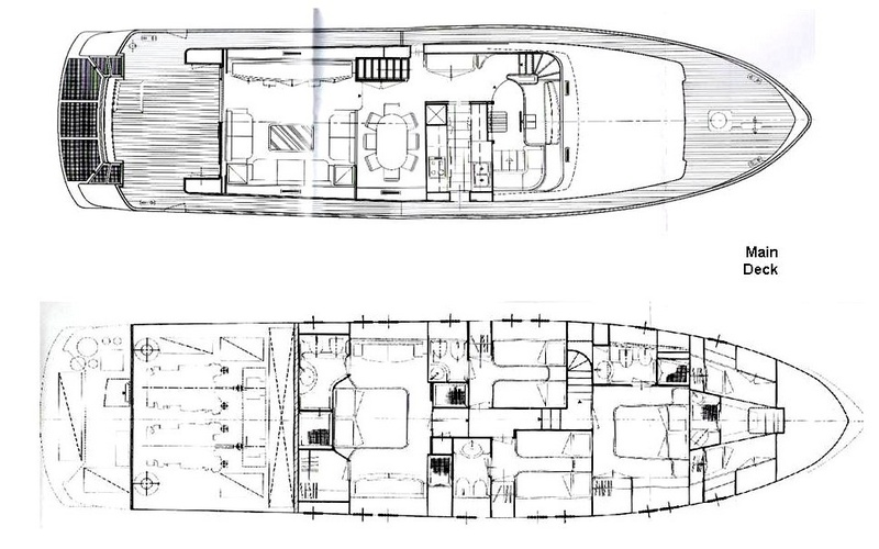 Notas de armamentohélice de proa hidráulico - aire acondicionado (48.000 BTU) - desalinizador 120 l / h - pasarela hidráulica escamoteable - cabrestante con deformaciones campana de proa - popa tornos de amarres - Grúas de licitación en el momento - Bimini top - bar y el hielo los responsables de la sala de estar - TV LCD oculto en la sala de estar con VCR y equipo de música - TV LCD de 15 "en el camarote del armador - Car Stereo en todas las cabinas.