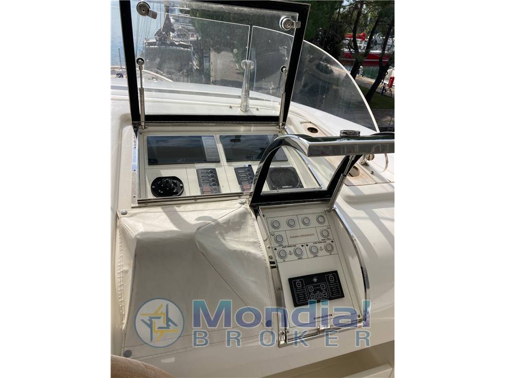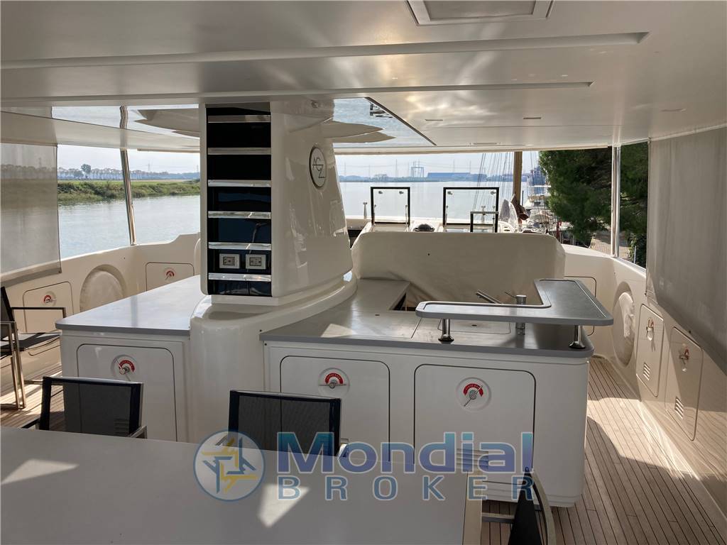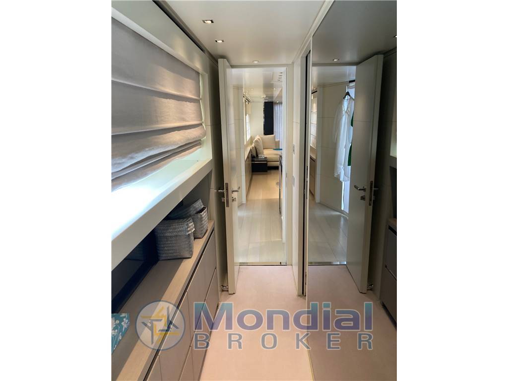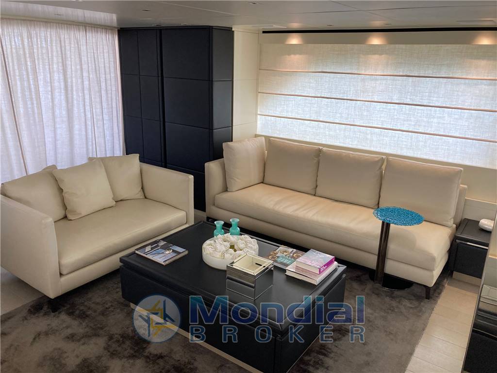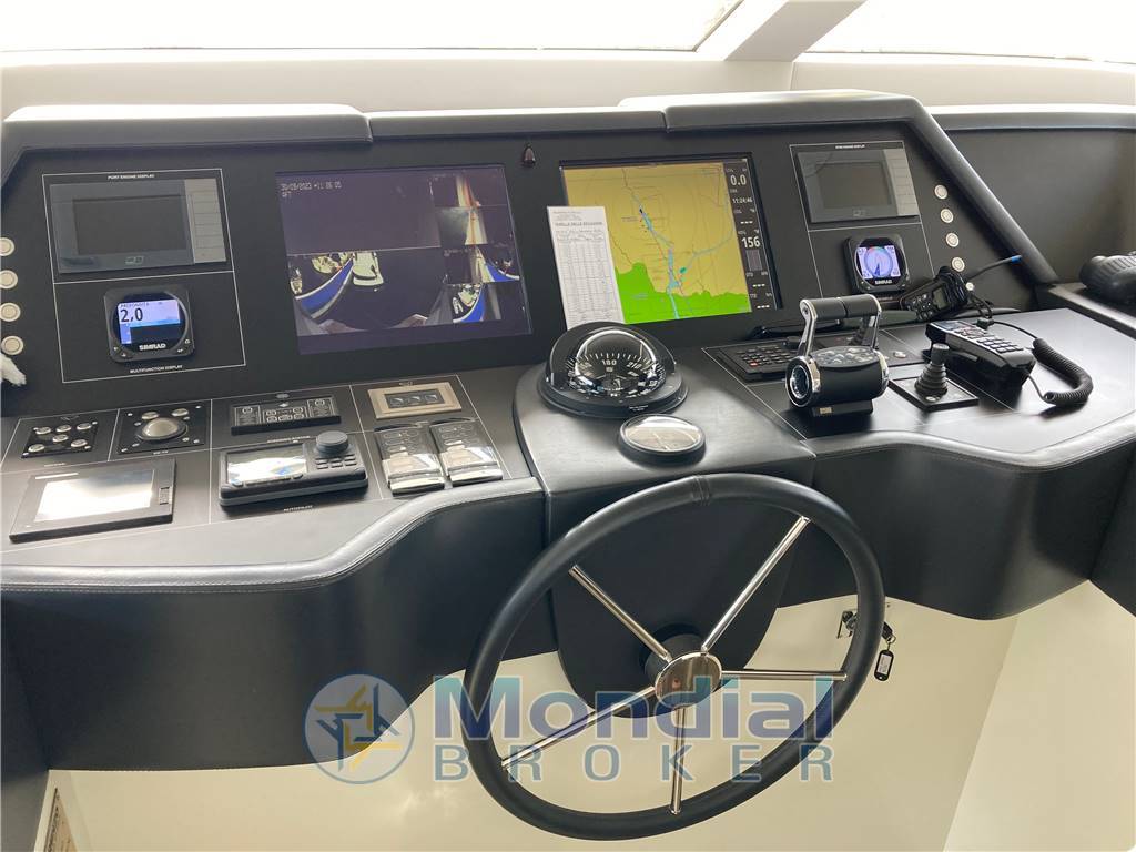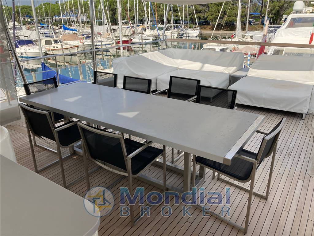 Notas internasSuite armatoriale panoramica in coperta con matrimoniale king size, grande bagno e ampia cabina armadio. Ponte inferiore: 2 Cabine VIP matrimoniali, ognuna con ampio bagno e cabina armadio. 2 cabine ospiti con letti in piano, ognuna con bagno. Zona equipaggio: Dinette, Cabina comandante singola con bagno privato e 2 Cabine marinaio letti a castello con bagno condiviso. Notas de la instrumentaciónVHF, Autopilota, Log, Plotter, GPS, Radar, Echo, AIS, Computer, Comando motori elettronico, Fax, Interfono, Telefono GSM. Epirb.Generatori KOHLER 1x44kW (3700h) + 1x33kW (3100h), Caricabatterie, Inverter. Notas de armamentoAllarme gas, Allarme motore, Allarme sentina, Flap idraulici, Garage per tender, Gruette per moto d'acqua, Gruette per tender, Hard top, Impianto antincendio, Porta laterale, 2 Salpa Ancore Elettrico, Sistema Depurazione acque nere, Stabilizzatori, 2 Winch tonneggio di poppa, 2 Winch tonneggio di prua.BBQ/ Grill, Boiler, Dissalatore, Cassaforte, Clima reversibile, Collegamento internet, Controllo Domotica, Impianto acque nere, Prese interne 12v, Prese interne 220v (e 380v), Telecamera, Telefono Interno. Decoder satellite, Home Theater, Stereo, 4 TV + TV 40" fly, CD/Dvd player. Icemaker, Lavasciuga, Lavastoviglie. Scaletta bagno, Doccia esterna, Bimini, Copripozzetto, Cuscineria completa, Cuscineria di poppa, Cuscineria di prua, Cuscineria fly, Tenda Elettrica (cabina armatore), Tendalino, Chiusura invernale pozzetto e fly, Tender Zodiac 3,80mt FB 40hp |