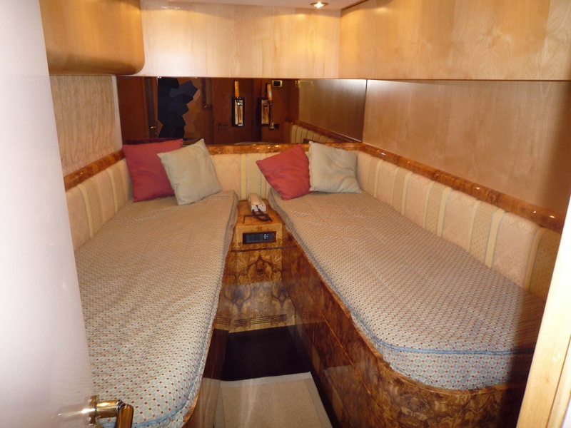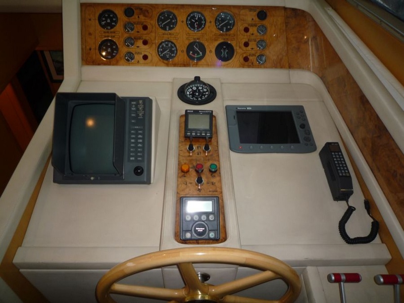 Notas internasBajando hacia el área para dormir con un fácil madera escalera son la gran suite principal popa viga completa con cama de matrimonio y tocador con cajones, sofá, escritorio con silla, precioso baño con revestimiento de mármol ónix dorado con bidet y cuarto de baño grande con sillas de teca y entrada en plexiglás negro madera piso-adelante encontramos el primer estribor camarote con 2 camas y baño privado con ducha Onyx Mármol revestimiento. y dejó el segundo camarote con dos camas individuales y baño privado con ducha en mármol de Carrara blancos-arcos con entrada desde el exterior nos encontramos con equipo con dos literas separadas con baño individual con cabina de ducha-teca con gran mesa y sofá teca plegable fijada + sillas plegables de tela y teca. Mosca equipado con davit licitación, alo sofá cubierta de esquà y con sesión doble caseta. Interior clásico con recubrimientos de muebles de madera y iroko DIAL labrada con incrustaciones de suelos y tablones de madera de teca color negro-amplio living comedor dividido en dos zonas claramente diferenciadas: el primer viviente con sofá en forma de U en asientos de cuero ligero + mesa de madera, como opuesto móvil más grande de servicio 32 "LCD TV y minibar-la segunda zona cerca de la caseta con puerta lateral a Viareggio y la segunda apertura de la mesa en forma de y con incrustaciones de madera y con sofá en forma de L en cuero con 4 asientos cómodos de luz, en contraposición a la caseta del timón en el costado de estribor con el puente de acceso de sistemas de mando y control dentro de la marcha con cocina de madera escalera Local con independiente puerta a Viareggio y bañera de hidromasaje completo con aparatos: fregadero de acero inoxidable con dos lavabos, nevera grande con congelador, dispositivo de hielo, horno, campana extractora, whirlpool lavavajillas - Ir a la zona de dormitorio con una escalera de madera lisa encontramos la gran suite principal popa viga completa con cama de matrimonio y muebles con cajones, sofá, escritorio con estar, cuarto de baño con revestimiento de mármol con oro Onix con bidet y ducha local grande con asiento de madera de teca y el puerto de entrada en arco estribor de plexiglás parquet negro-A se encuentra el primer camarote con 2 camas individuales y baño con mármol ónix de ducha techo... y dejó el segundo camarote con dos camas individuales y baño privado con capa de ducha en mármol blanco de Carrara-arco extrema con la entrada de ' fuera hay alojamientos de la tripulación con literas dobles y un baño con ducha-gran bañera teca con gran mesa de teca y plegable grande fija la tela del sofá + plegable sillas y teca. Mosca alo equipado con pescante para el sofá tierno, cubierto en esquà y timón doble asiento. Notas de la instrumentaciónCompletar la instrumentación electrónica repetido sobre la marcha: gps chart plotter RAYMARINE C 120-gps-plotter en antena de radar de la sonda-mosca-meteofax-2 VHF + portable-Radar Furuno 72 mgl-piloto automático Autohelm st 60 viento Raymarine satélite tracvision antena de satélite decodificador de tv-Checker + Radar-radio estéreo con cd dvd lcd Tv 32 ' PANASONIC en Salon + decodificador x ski and dvd y cd estéreo radio-TV LG 28 ' maestra en control directivo sistema-mecccaniche-esposas operador control estación administración de equipos analógico propulsor de VDO-intercom-funcionamiento de tiempo-profundidad de sonda en el arco-Completar la instrumentación electrónica repetido sobre la marcha: gps chart plotter Raymarine C 120-GPS plotter-en el viento de la mosca-depth sounder-meteofax + 2 de radar portátil VHF-Radar Furuno 72 mil-piloto automático-Raymarine Autohelm ST 60 estación tracvision para satélite tv satélite tv decodificador + herramienta control radar-radio cD estéreo con DVD-32 ' decodificador LCD TV PANASONIC en salón + x ski and dvd y cd estéreo radio-TV LG 28 ' dirección de cabina de control sistema-esposas-equipos mecccaniche motor gestión control analógico intercomunicador de VDO-maniobras de estación meteorológica-sonda-proa- Notas de armamentoLofran cabrestante + ancla Bruce con 120 mt cadena-completo con seguridad equipo seguridad balsa-combeo Tornos cojines completar pasarela hidráulicas retráctiles 2 popa para la cubierta de full-cover de solarium de la mosca y bow-Windows para muebles y sofás Fly-desvÃo hacia adelante hélice-arco volar con bimini top y alo grúa tierna mt 320 + 30 HP Fb-aire acondicionado en cada habitación con doble bomba de calor con termostato cabina,y teca pasillo passavanti hidráulica besenzoni-tripulación de arco con 2 camas y baño Kohler generador plus-ventiladores, extractores de aire en la cocina de motor habitación totalmente equipada con tina de acero inoxidable doble bacha,Doble mini,LAVAVAJILLAS,horno con capucha,microondas,cabrestantes de cabrestantes de lavadora-vida-máquina de hielo puños doble mecánica eléctrica Stern Beacon-luces completa lleno campista toldos para cierre de cabina,dirección almohadas arco y mosca,portada de sofás en la cabina y sobre la marcha,cubierta lateral copriparabrezza y Bimini top volar en cubierta de teca completo de lienzo en blanco,CABINA,plataforma de popa y la subida de la escalera a mosca-comedor mesa sólida teca plegable cabina LCD TV PANASONIC 32 ' Lounge-DVD decodificador esquà y VCR en sala de estar-TV LCD LG Armtore 28 ' cabina radio estéreo sistema de altavoces en salón y bañera y con equipos de seguridad amortiguadores completos CD-changer-externo para comprobar... RINA hacerlo en Julio 2013-Lofran + Bruce ancla cabrestante con 120 m de cadena completa con stern de seguridad 2 balsa salvavidas seguridad equipo cabrestantes hidráulicos cojines de pasillo lleno de fly para tomar el sol y cubierta de cobertura total de bow-windows para muebles y sofás Fly-fly de proa y popa-arco arco con bimini top y grúas para alo tierna mt 320 + 30 hp Fb-instalación de aire acondicion