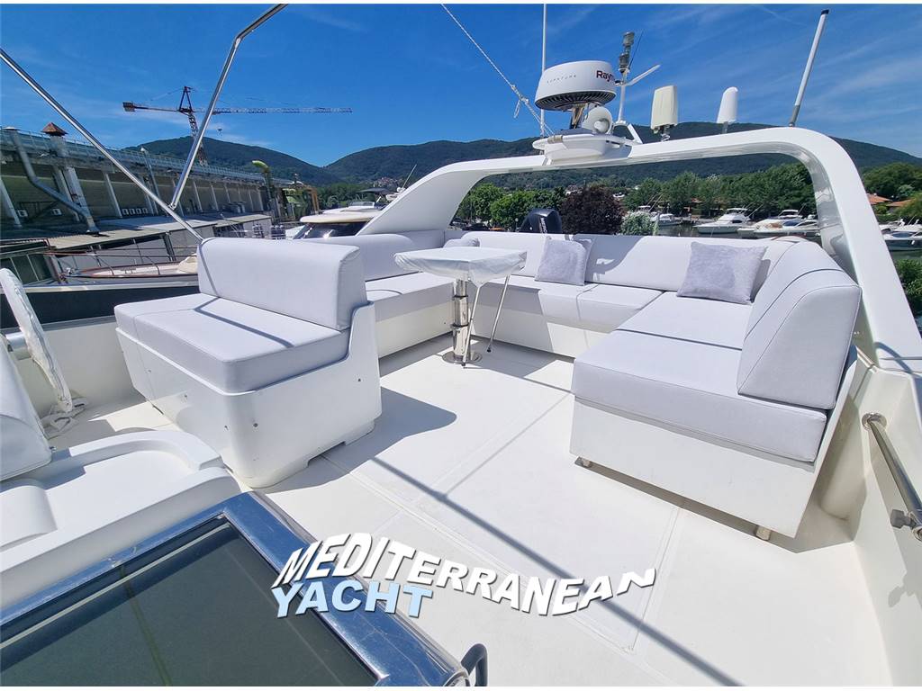 Notas internas- Salone con divano a "C" e tavolo, mobile contenitore contrapposto - Cucina in locale separato con piano cottura in vetroceramica, frigo/freezer a colonna Miele, lavastoviglie, forno elettrico, cappa aspirante e porta di uscita sul camminamento laterale DX - Disimpegno con scala salita al fly, e porta di uscita sul camminamento laterale SX - Timoneria lato DX, dinette contrapposta con divano a "L" tavolo pranzo e pouf, scala discesa al ponte cabine. PONTE INFERIORE: - Cabina armatore a prua con letto matrimoniale, bagno con cabina doccia - Due cabine doppie con letti in piano, ognuna con bagno privato e cabina doccia - Interni in noce Tanganica, divani in pelle. EQUIPAGGIO: - Una cabina a prua con due letti e bagno. Notas de la instrumentación- Radar RAYMARINE QUANTUM 18”- GPS/plotter RAYMARINE AXIOM 12” - Autopilota Simrad - Ecosonda Raymarine + VDO - VHF Skanti - Impianto WIFI - Tutti gli apparati sono ripetuti sul fly Notas de armamento- Generatore Kohler- Aria condizionata doppio ciclo - Elica di manovra idraulica a prua - Passerella idraulica a scomparsa - Gru elettroidraulica sul fly - Tender con motore Johnson 9 cv - Comandi elettronici - Impianto TV a circuito chiuso RAYMARINE CAM 300 con telecamere in sala macchine e pozzetto - Impianto WIFI - Verricello salpancora con due campane di tonneggio - Verricelli di tonneggio a poppa - Bimini sul fly - Fabbricatore ghiaccio - Frigobar in salone - Frigo/freezer supplementare nel gavone a poppa - Lavatrice nel gavone a poppa - Impianto antincendio - TV LCD Samnsung 40" 3D in salone |