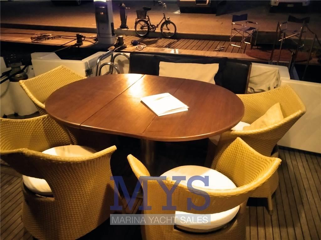 Notas internas1 Cabina matrimoniale VIP dotata di bagno completo di lavabo,doccia e WC marino elettrico 1 Cabina doppia con letti in piano 1 Bagno servizio dotato di lavabo,doccia e WC marino elettrico 1 Cabina equipaggio con bagno privato dotato di lavabo,doccia e WC marino elettrico 1 Cucina separata con porta laterale compeleta di lavandino,frigo,lavastoviglie,forno,micronde e piastra vetroceramica 2 Saloni con divani, tavoli e TV Notas de la instrumentaciónAllarme motoreAllarme sentina Ancora Angolo barra Antenna radar Autoclave Altoparlanti Antenna Satellitare TV Aria condizionata Boiler Batterie Bussola Caricabatterie Contamiglia Doppia timoneria Ecoscandaglio Elica di prua Frigorifero esterno (SU FLY) Faro orientabile Flap idraulici GPS Impianto antincendio Indicatori Flaps Interfono ICE Maker Impianto TV Inverter Lavaggio catena Luci di cortesia Lavatrice Passerella Pilota automatico Plotter Radar Raddrizzatore Ripetitore strumentazione Riscaldamento Salpancora Elettrico Serbatoio Acque Nere Stereo Telecamera (sala macchine) Tromba Winch Elettrico Winch tonneggio di prua VHF Notas de armamentoBiminiCopripozzetto Cuscineria di poppa Cuscineria di prua Cuscineria fly Doccia esterna Piattaforma Porta ingresso Porta laterale Pozzetto Teak Presa 220V banchina Presa acqua banchina Pavimento interno in legno Scaletta da bagno Tavolo pozzetto Teli copri finestra Telo Copertura Fly Telo copriconsolle Telo coprisedile Tendalino |