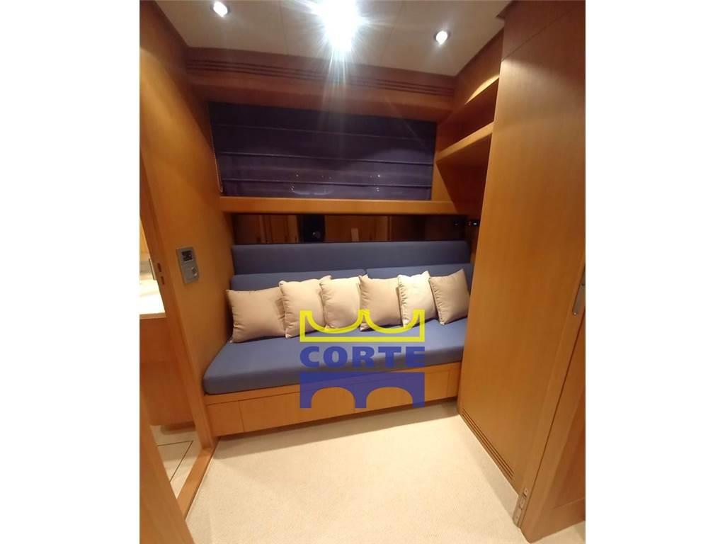 Notas internasZona pranzo con tavolo e 8 sedie Cucina attrezzata, con doppio lavello, piastra in vetroceramica, forno, frigorifero, freezer Cabina armatoriale matrimoniale a centro barca a tutto baglio Bagno armatoriale con doccia separata Cabina VIp matrimoniale Bagno cabina VIP con doccia separata. Cabina ospiti con letti in piano Bagno ospiti con doccia separata Cabina ospiti con letto singolo Bagno ospiti con doccia separata Cabina equipaggio a due letti a prua Bagno equipaggio Notas de la instrumentaciónAllarme fumo/gas, Allarme motore, Allarme sentina, Ancora, Antenna radar, Autoclave, Batterie, Bocche di Lupa, Bussola, Camminamenti laterali in teak, Caricabatterie, Comando motori elettronico, Computer di bordo, Contametri catena, Contamiglia, Display, Doccia esterna, Doppia timoneria, Ecoscandaglio, Elica di poppa - stern thruster, Elica di prua - bow thruster, Flap idraulici, Gruette per tender su fly, Impianto antincendio, Luci di cortesia, Passerella (elettroidraulica a scomparsa), Piattaforma (poppa con carabottino in teak), Pilota automatico, Plotter con antenna GPS, Pompa di sentina automatica, Pompa di sentina elettrica, Porta ingresso, 2 Porta laterale, Pozzetto Teak, Presa 220V banchina, Presa acqua banchina, Radar, Radio VHF, Rollbar, Salpa Ancore Elettrico, Scaletta da bagno, Tavolo pozzetto, Tender, Tromba, Winch tonneggio di poppa, Winch tonneggio di pruaNotas de armamentoAltoparlanti, Antenna Satellitare TV, Bimini (top fly), Boiler (elettrico scambiatore), Cassaforte, Clima reversibile, Congelatore, Cucina, Cuscineria di poppa, Cuscineria di prua, Cuscineria fly, Cuscineria Pozzetto, Digitale Terrestre, Dissalatore, Forno, Frigorifero esterno, Frigorifero interno, Impianto acque nere, Impianto TV, Inverter, Lavastoviglie, Meccanismo saliscendi per TV, Pavimento interno in legno, Piastra in vetroceramica, Prese interne 12v, Prese interne 220v, Serbatoio Acque Nere, Stereo, 2 TV (salone, cabina armatore), WC marino elettrico |