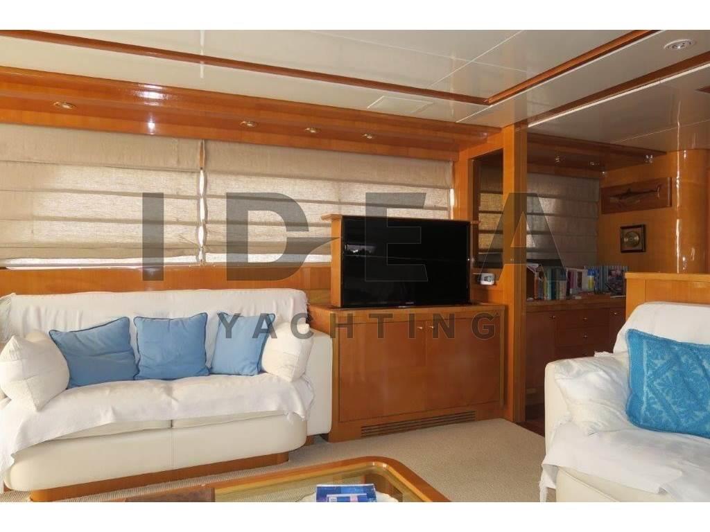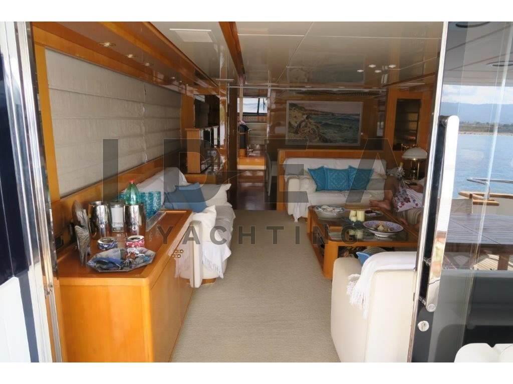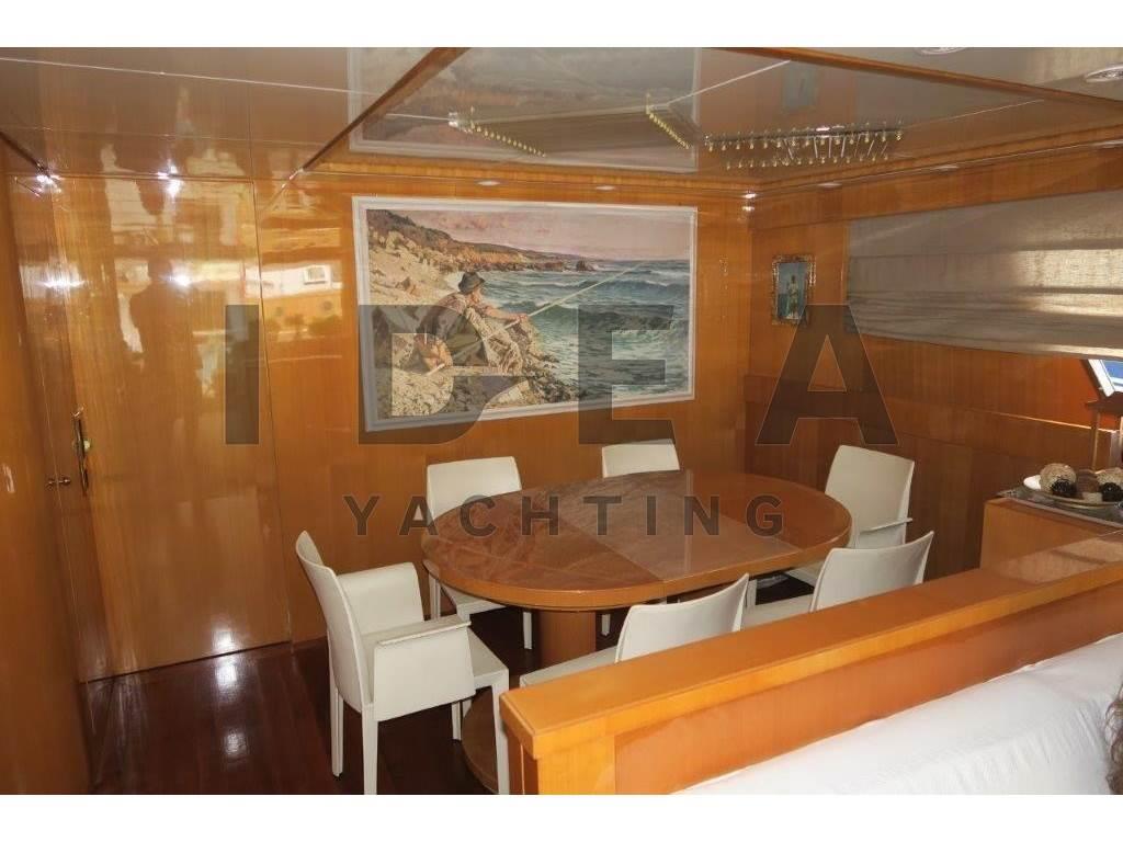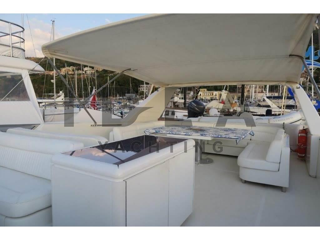 Notas internasCabina armatoriale a centro barca. VIP a poppa Due cabine twin con ulteriore pullman bed. Notas de la instrumentaciónElettroniciRipetitore(i) VHF - Sailor GPS - Lorenz Altoparlanti pozzetto Pilota automatico - SIMRAD Robertson AP22 Radar Bussola Stazione vento Plotter - Lorenz Ecoscandaglio - B&G Network QUAD TV Notas de armamentoEquipaggiamenti interniLavatrice Elica di manovra poppa Dissalatore - 300l/h Forno Lavastoviglie Riscaldamento Frigorifero Aria condizionata Microonde Caricabatterie Elica di prua Acqua calda Equipaggiamenti Elettrici Generatore - 2xKOHLER 25kw each Presa corrente a terra Dotazioni Esterne Pozzetto teck Doccia di pozzetto Tavola di pozzetto Gruette Scaletta di bagno passavanti in teak Passerella idraulica Tender - Capelli 3,70m o/b40hp Coperture/Tendalini Tendalino rigido |