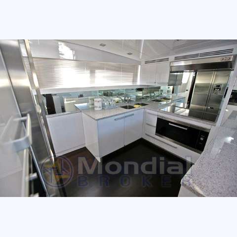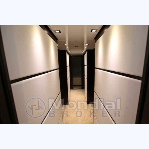 Notas internas2 cabine ospiti con letti in piano e bagno; Cabina vip a prua con bagno; Cabina equipaggio per 4 con servizi. Notas de la instrumentaciónVhf, Echo, Log, 2xPlotter, 2xRadar, Stabilizzatori Zero Speed, Elica di poppa idr.Saim, Telecamere pozzetto e sala macchine.2 generatori Köhler da 27Kw (3000 ore ca.), Caricabatterie, Presa a terra, 24/220V. Notas de armamentoDissalatore Idromar 230 l/h. 3 Tv Lcd nelle cabine + Tv Plasma 42” in salone, Tv Sat Kvh G6, 6 decoder, Imp.Stereo Bose Lifestyle 38 con 5 casse, Lavastoviglie, Macchina da caffè, Frigobar + Wine cooler, Lavatrice + Asciugatrice (Tutti elettrodomestici Miele, compresi quelli in cucina).Tendalini vari, Capottina, Cuscini e materassi est. in tessuto Sunumbrella, Tender con idrogetto, Passerella, Gruette. |