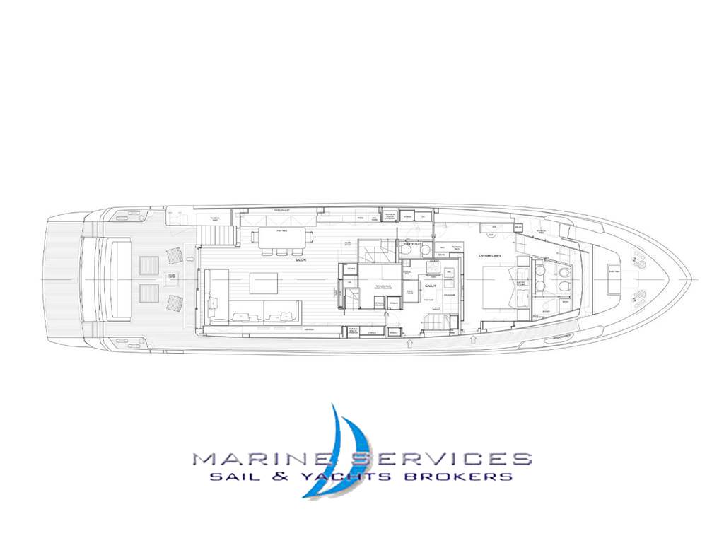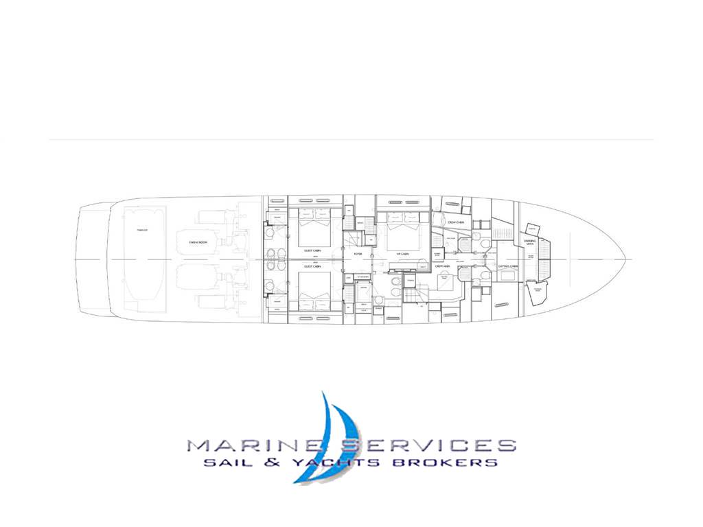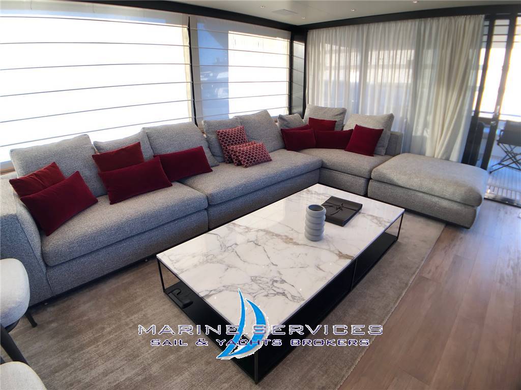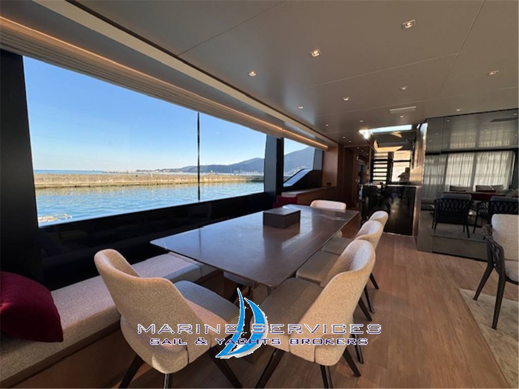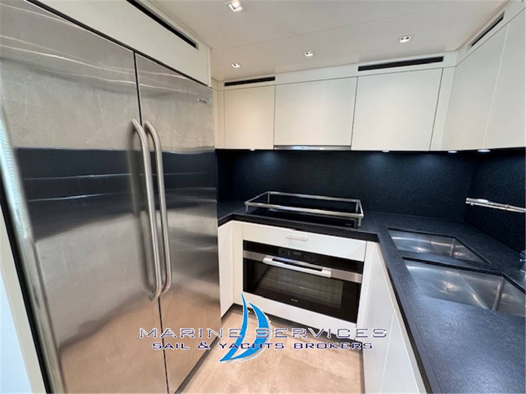 Notas internasZona equipaggio a Prua : 2 Cabine 2 Bagni + Dinette separata e zona lavanderia Ponte inferiore : 3 Cabine Ospiti Matrimoniali con bagno en suite . Cucina separata su ponte principale completa di Elettrodomestici : Piastra induzione Miele , Winecooler , Lavastoviglie Miele , Macchina Caffè ,Forno Combinato Miele , Frigorifero doppia anta con Congelatore, Frigorifero esterno, Frigorifero interno, ICE Maker. Salone con divani in Tessuto, Tavolo pranzo in Marmo , pavimento in parquet, moquette nelle cabine. Notas de la instrumentaciónIntrattenimento : Altoparlanti, Decoder satellite, Digitale Terrestre, DVD, Home Theater, TV in salone e cabineAIS Antenna Radar Comandi Motori elettronici 3 Display Raymarine multifunzione in Plancia interna e su Timoneria Fly Strumentazione Pinne stabilizzatrici Autopilota Raymarine Bussola Magnetica Notas de armamentoPonte in Teak completo incluso FlybridgeHard Top con apertura centrale ad alette Mobile bar attrezzato con Frigorigero , Icemaker , Piatra cottura e Lavabo Tavolo Pranzo su Flybridge Pinne Stabilizzatrici Zona prendisole a prua Pozzetto di Poppa con Tavolo in teak e sedie regista Plancetta di Poppa idraulica Passerella Idraulica Tender Garage Balcony apribile su lato sx zona salone Elica di Prua e Poppa Argani di Tonneggio a Poppa Doppia ancora con argani a prua Luci subacquee Cuscinerie esterne complete Set di coperture per arredi di prua , poppa e flybridge |