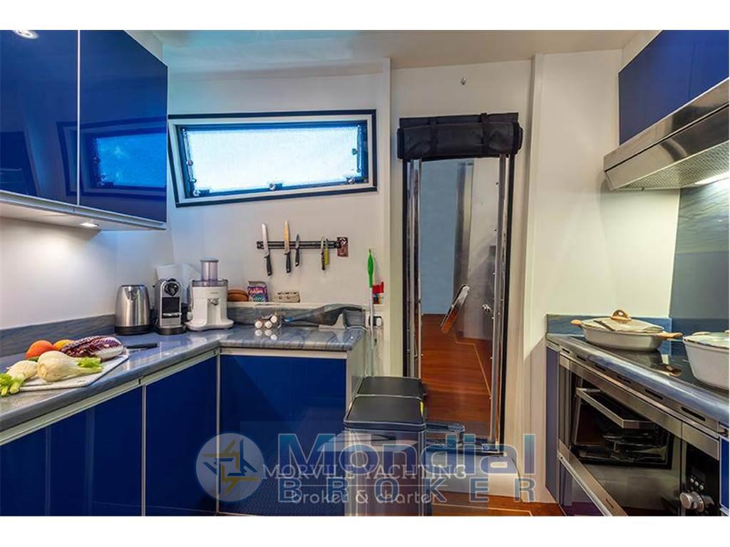 Notas internasCabine ospiti: 4 Cabineequipaggio: 1 Bagni degli ospiti: 4 Bagnidell'equipaggio: Lavasciuga Lavatrice Antenna TV satellitare Lettore DVD Impianto stereo Impianto TV Tv Bagni: 4 Cabine: 4 Cucina Forno a microonde Forno Congelatore Notas de la instrumentaciónImpianto elettronico- AIS - Altoparlanti di pozzetto - Bussola - Centrale di navigazione - Computer di bordo - Ecoscandaglio - GPS - Impianto TV: TV SAT ANTENNA - Lettore CD - Lettore DVD - Log-contamiglia - Pilota automatico - Plotter: 3 PLOTTER RAYMARINE E 120 - Radar - Radio - Ripetitore(i): STRUMENTI RIPETUTI SUFLY - TV a schermo piatto: 4 TVC LCD - VHF: 2 VHF Pilota automatico Baromentro Bussola Comandi flaps Contamiglia Ecoscandaglio GPS GPS-Plotter Vhf Notas de armamentoSerbatoio acquenere:1 x 500 l Dotazioni Addizionali - Cantina per vino - Luci subacquee Coperture/Tendalini - Tendalino pozzetto: + BIMINI TOP FLY Equipaggiamenti Elettrici - Generatore: 27 KW + 20 KW - Inverter - Presa corrente a terra Equipaggiamenti interni - Acqua calda - Aria condizionata - Caricabatterie - Compressore ad aria - Congelatore - Dissalatore: 2 DISSALATORI - Elica di poppa: IDRAULICA - Elica di prua: IDRAULICA - Forno - Frigorifero: + CANTINA VINI - Lavastoviglie - Lavatrice: LAVASCIUGA - Microonde - Pompa di sentina elettrica - Pompa di sentina manuale - Pompa per acqua di mare - Riscaldamento - WC elettrico - WC marino Dotazioni Esterne - Cuscineria pozzetto - Doccia pozzetto - Passavanti in teak - Passerella idraulica - Piattaforma idraulica - Pozzetto in teak - Scaletta bagno - Scaletta idraulica - Stabilizzatore giroscopico - Tavolo pozzetto - Tender: JET MT. 4,30 Cuscineria Frigorifero esterno Scaletta: 1 Tavolo nel pozzetto |
