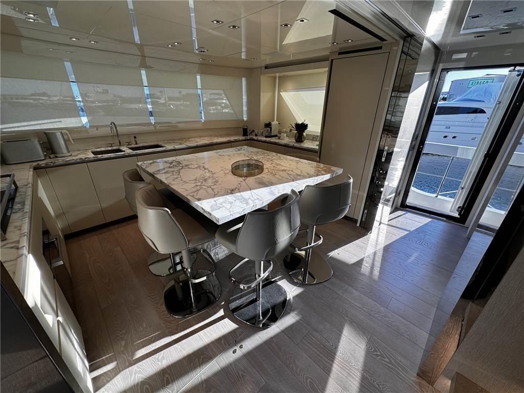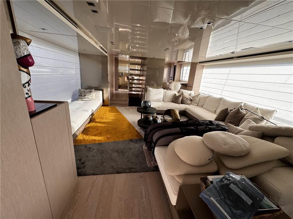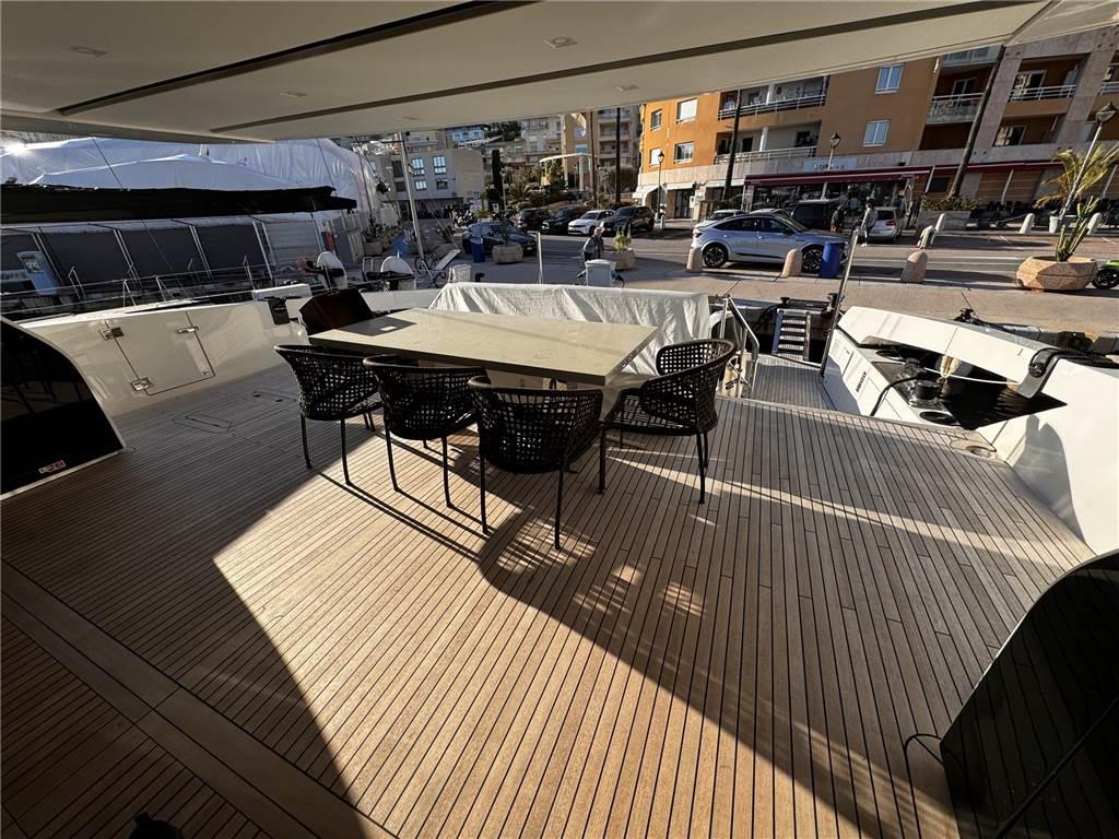 Notas de armamentoAllestimento tecnico e di coperta: Allarme motore, Allarme sentina, Ancora, Autogonfiabile, Camminamenti laterali in teak, Doccia esterna, Doppia timoneria, Elica di prua - bow thruster, Gruette per moto d'acqua, Gruette per tender, Luci di cortesia, Luci subacquee, Passerella, Piattaforma, Pompa di sentina automatica, Porta ingresso, Porta laterale, Pozzetto Teak, Presa 220V banchina, Presa acqua banchina, Salpa Ancore Elettrico, Scaletta da bagno, Stabilizzatori (FIN ZERO SPEED), Tavolo pozzetto, Tender (And Jetski), Tromba, Winch tonneggio di poppa, Winch tonneggio di prua.